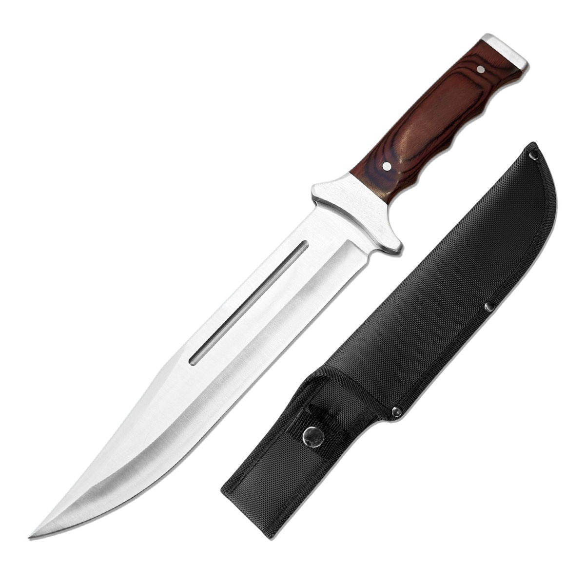 While this 15-inch knife has already hit the big time, it now wants to assist you on your next hunt out in the wild. The woven nylon sheath will keep it close to your side or on your saddle as you do a walkabout. Be it desert, jungle, swamp, or mountains, these 1-pound steel bowie knives are ready for whatever role you need them to take.