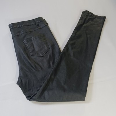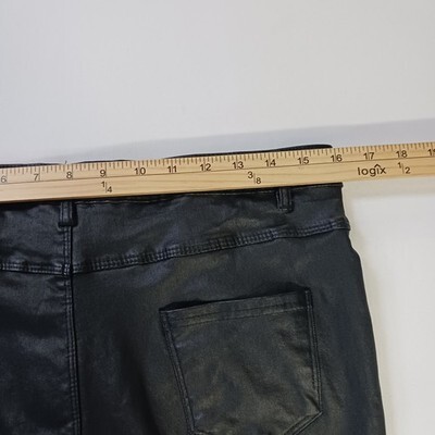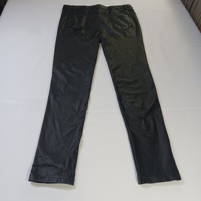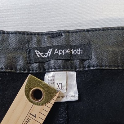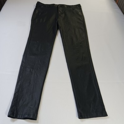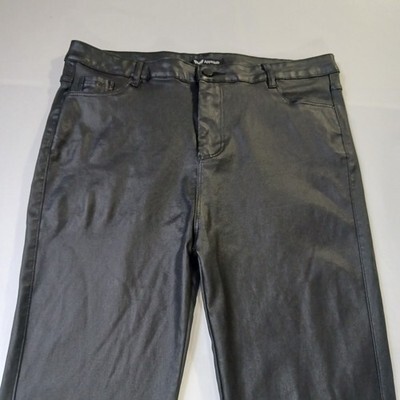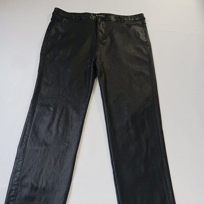 The product is a pair of AA Apperloth Women's Faux Leather Pants in size XL with a high rise and a skinny leg style. These black pants feature a button closure, flat front, and are made of faux leather, polyester, and spandex for a stretchy fit. They are suitable for various occasions like parties, casual outings, and business meetings. The pants have a 28.5-inch inseam and a 32-inch waist size, making them a stylish and versatile addition to any woman's wardrobe.