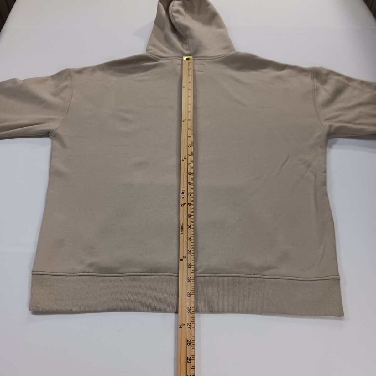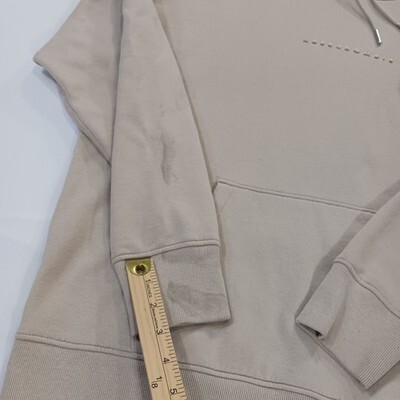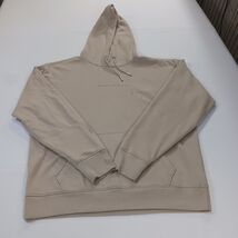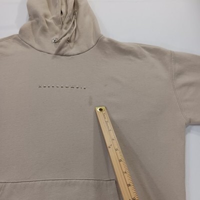 The Abercrombie & Fitch Men's Drawstring Hoodie Pullover Sweatshirt in size L is a classic and preppy pullover style hoodie perfect for all seasons. Made of a comfortable polyester and cotton blend fleece fabric, this hoodie features a solid beige color with a high neckline and long sleeves for added warmth. The drawstring closure also allows for a customizable fit. Easy to care for with machine washable instructions, this hoodie is a versatile addition to any man's wardrobe, suitable for various activities like walking in any season.