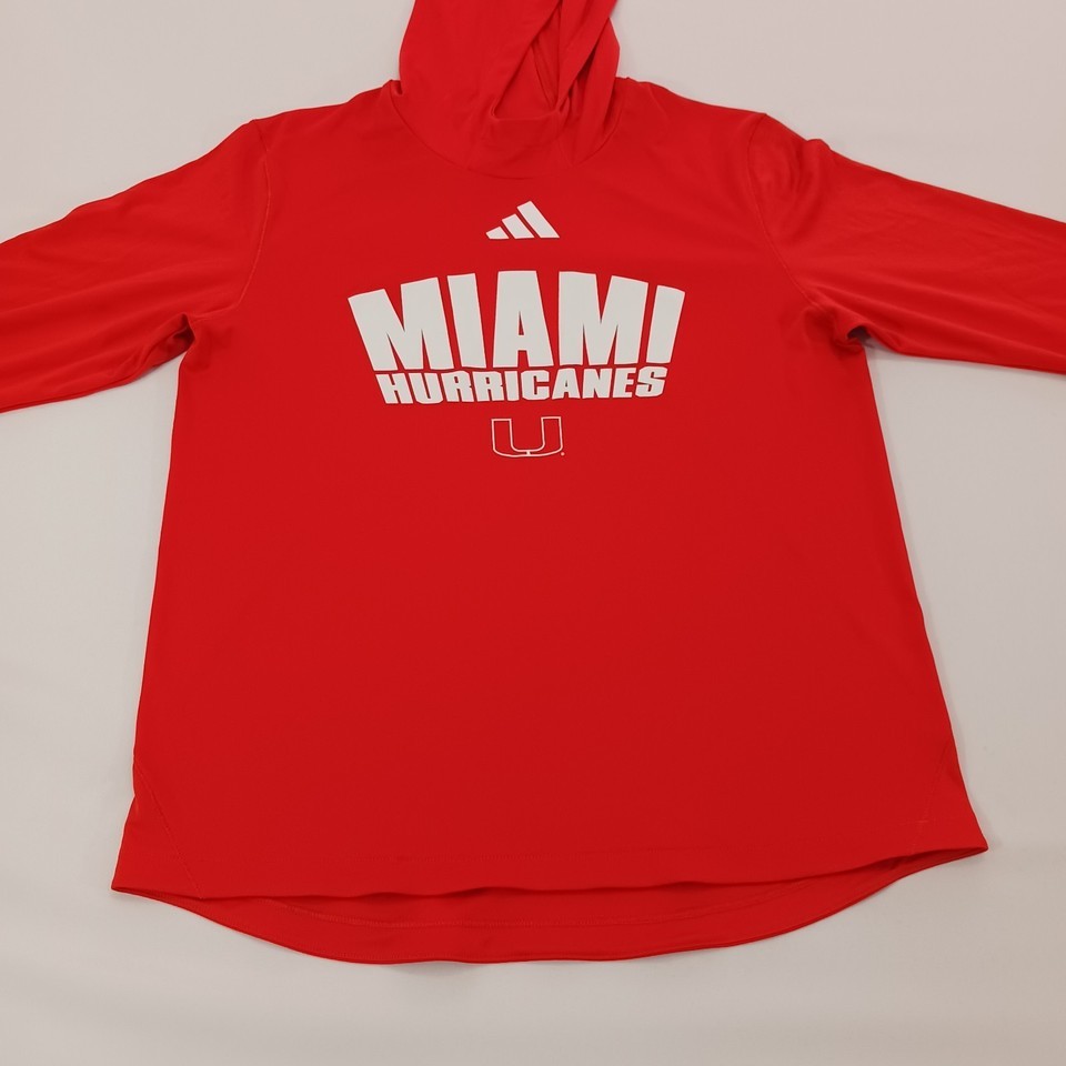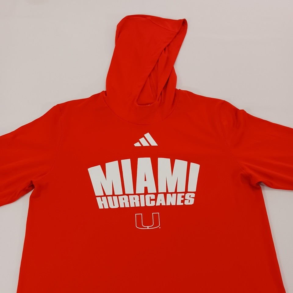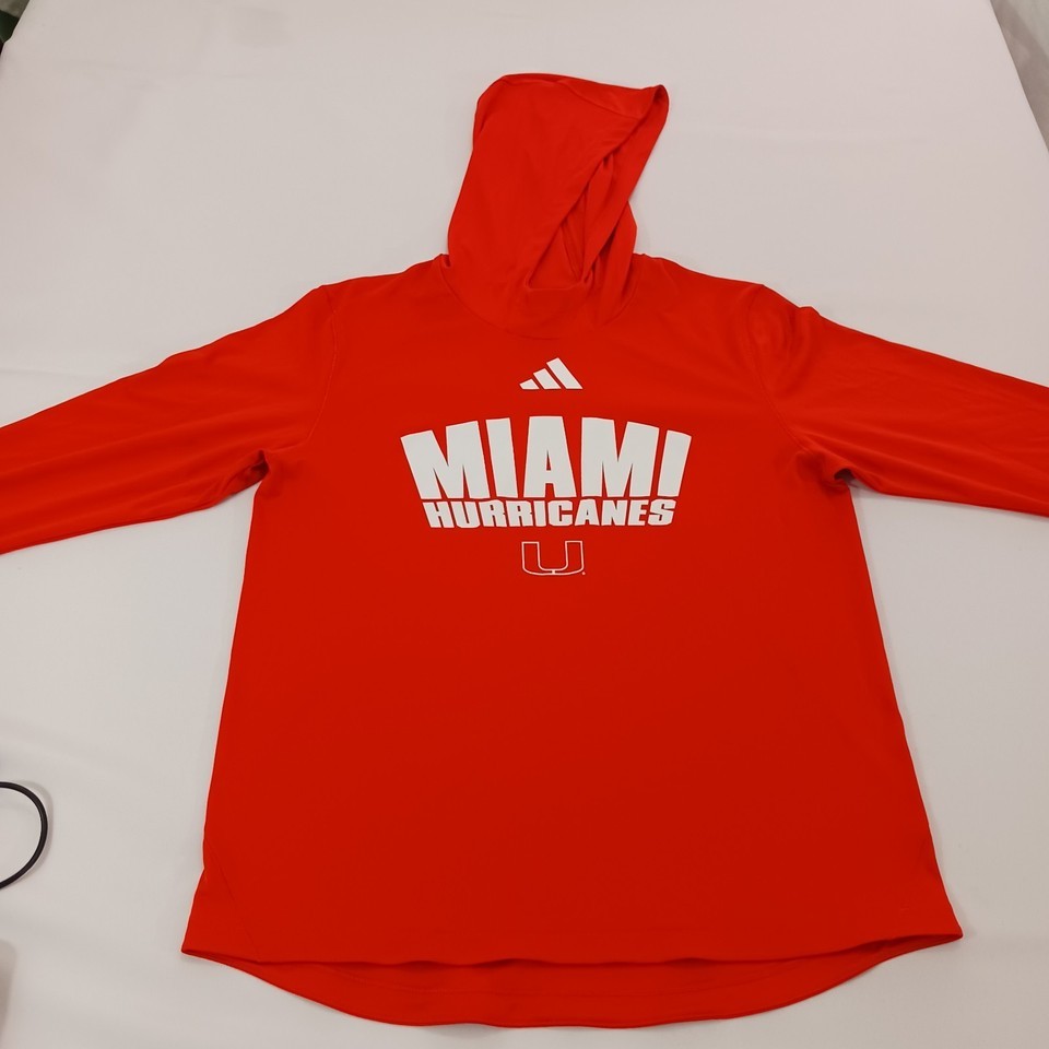 Experience the perfect blend of comfort and team spirit with the Adidas Miami Hurricanes Women's Long Sleeve Hoodie Shirt. Designed in a vibrant orange color, this medium-sized hoodie is a staple for any fan looking to show their support for the Miami Hurricanes football team. The athletic style ensures a look that's both fashionable and functional, whether you're at the game or on the go.