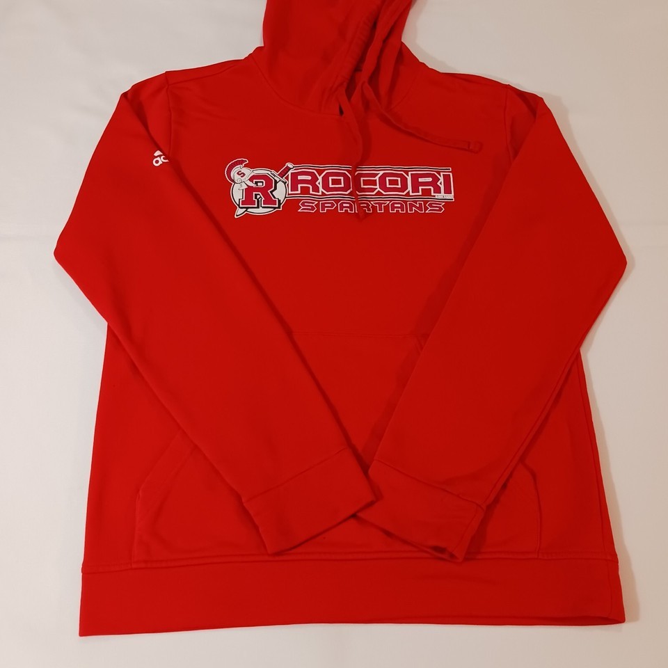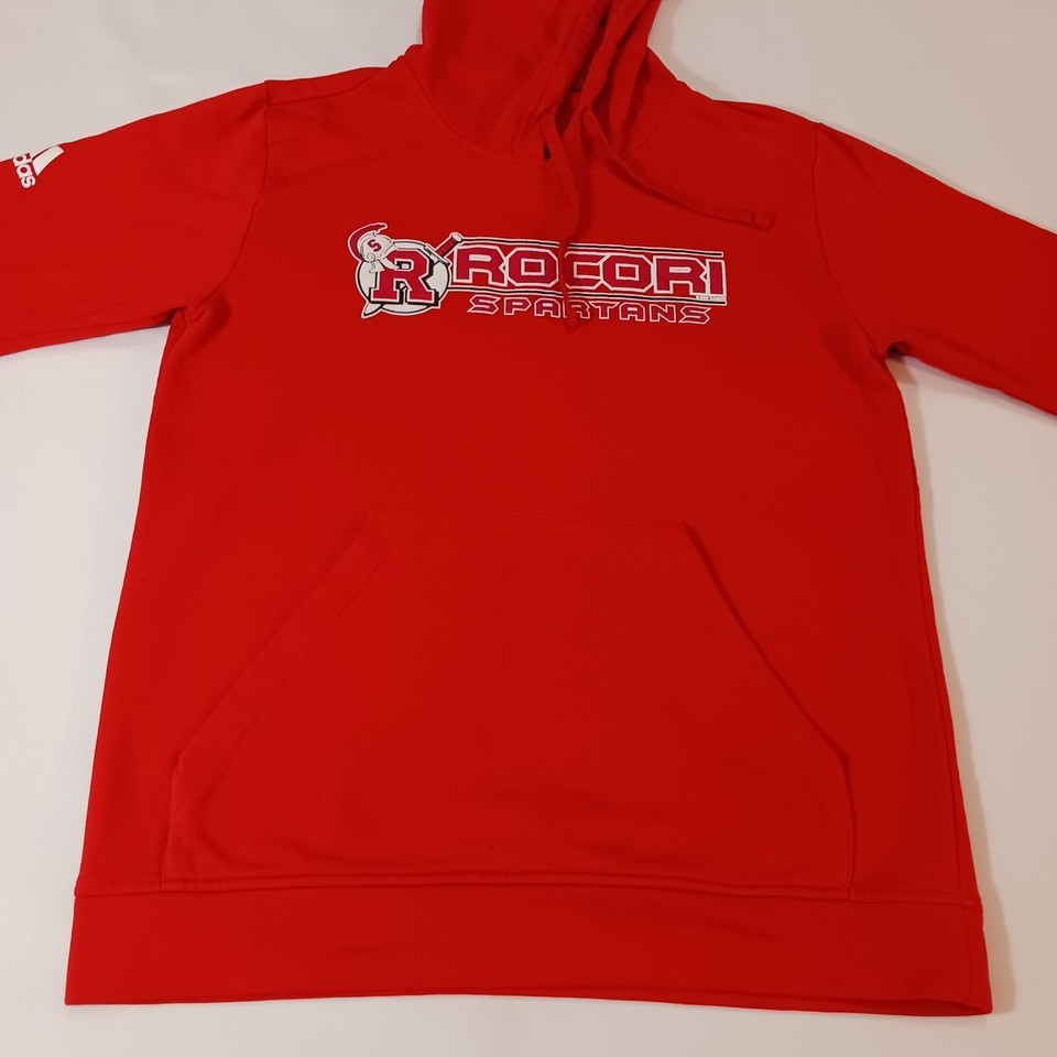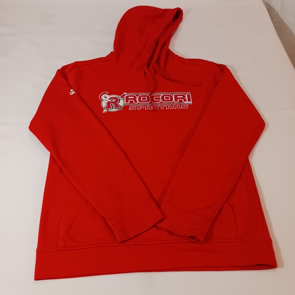Adidas ROCORI SPARTANS Men's Red Drawstring Pullover Hoodie Sweatshirt Sz Medium