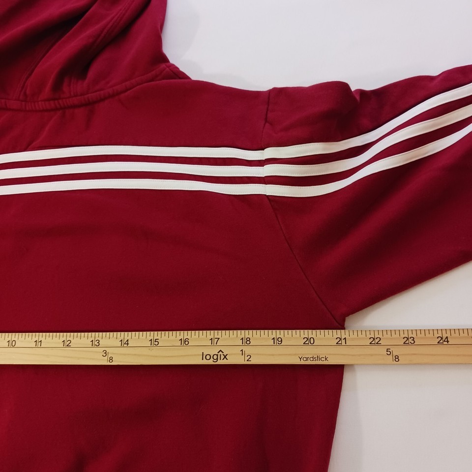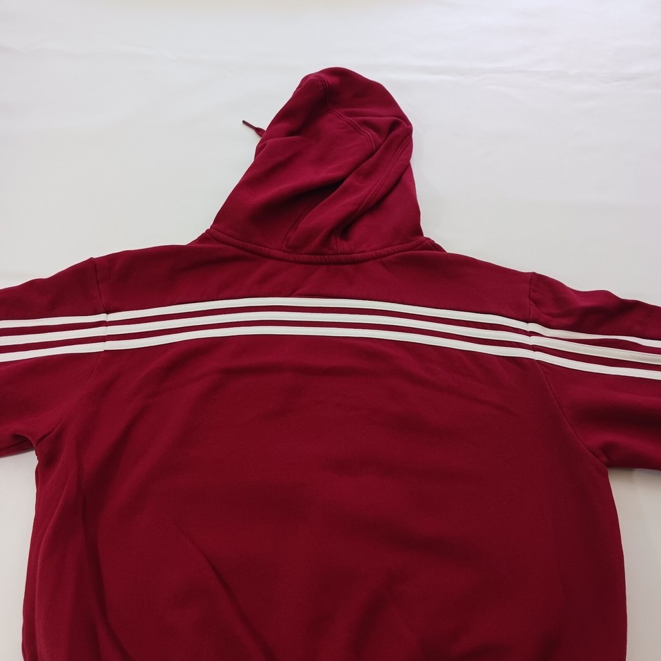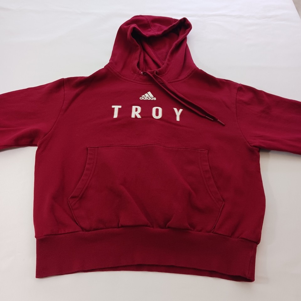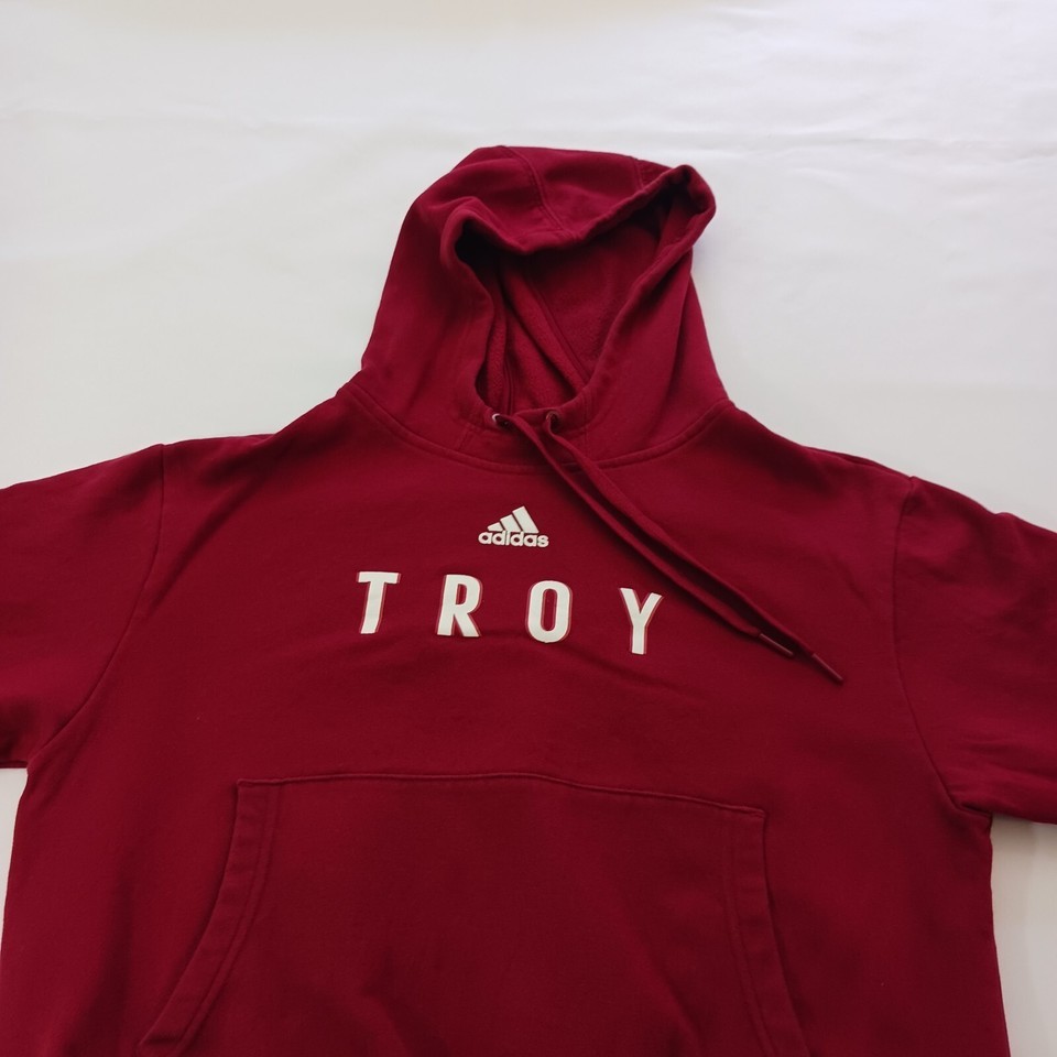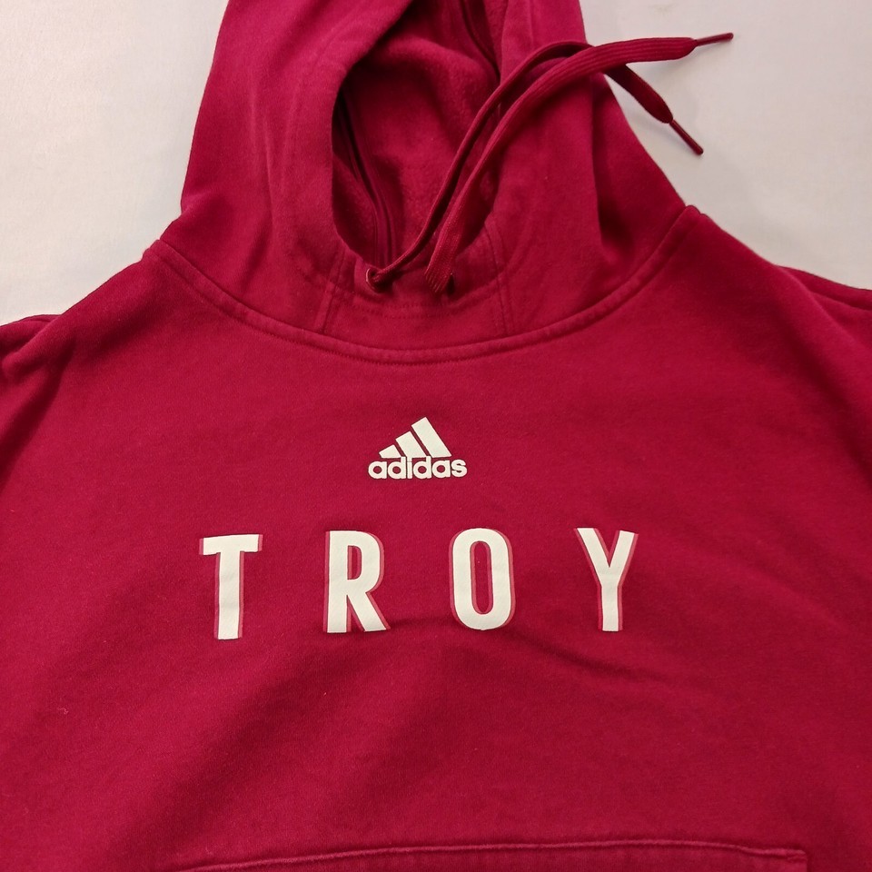 This Adidas TROY Men's Red Cotton Blend Drawstring Hoodie Sweatshirt in size Small is the perfect addition to your activewear collection. With a solid pattern and long sleeves, this sweatshirt is suitable for all seasons and is ideal for outdoor and sports activities. The pullover closure and drawstring hood make it easy to wear, while the pockets provide ample storage space for your essentials. Made from a blend of polyester and cotton, this sweatshirt is comfortable and breathable, ensuring that you stay cool and dry during your workouts. It's a regular fit and suitable for men of all ages, making it a versatile piece of clothing that can be worn for gym and training or basketball activities.