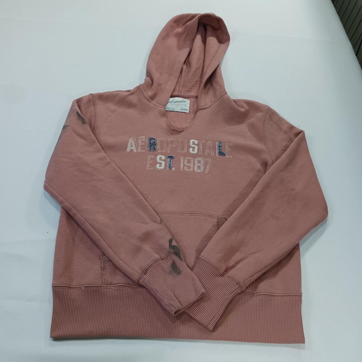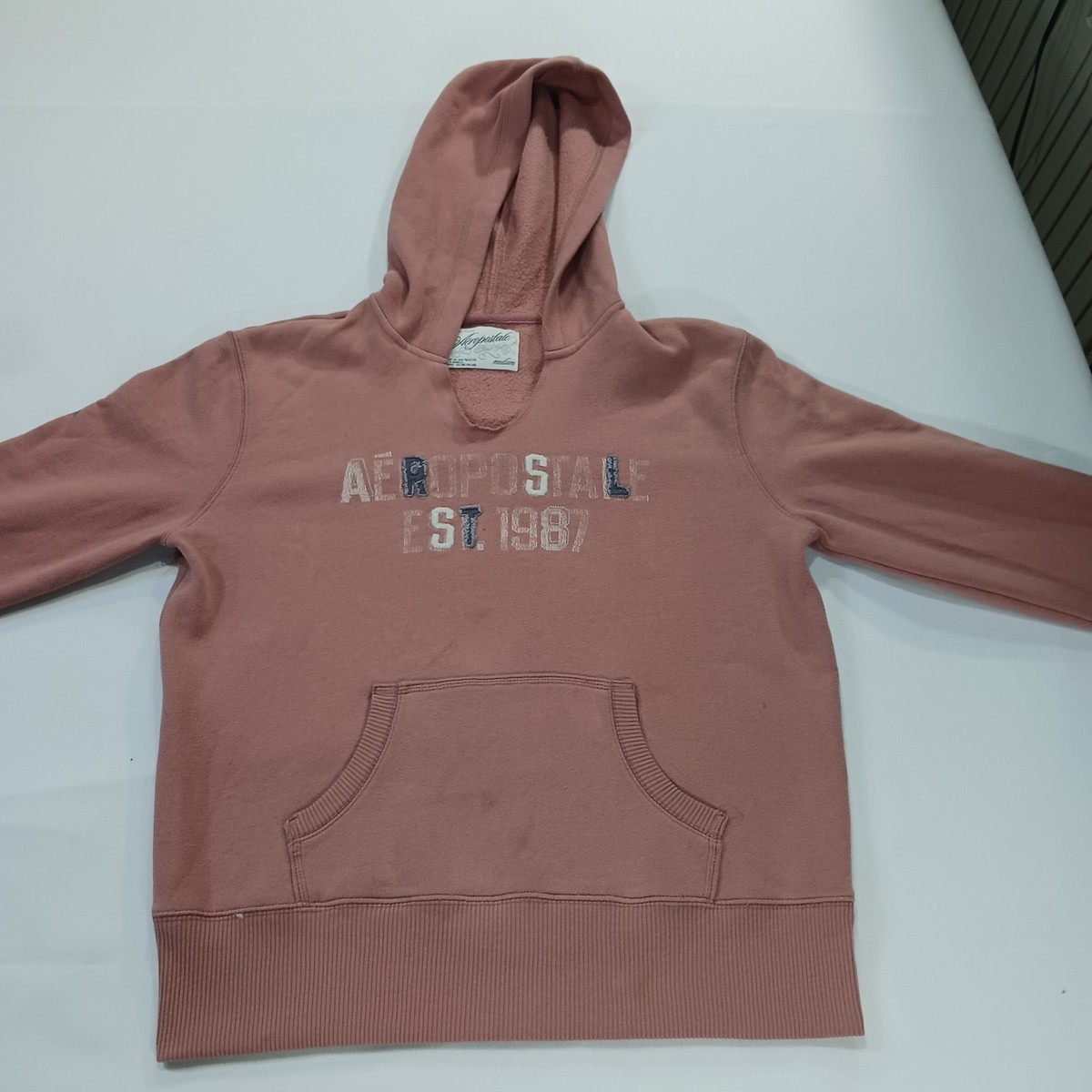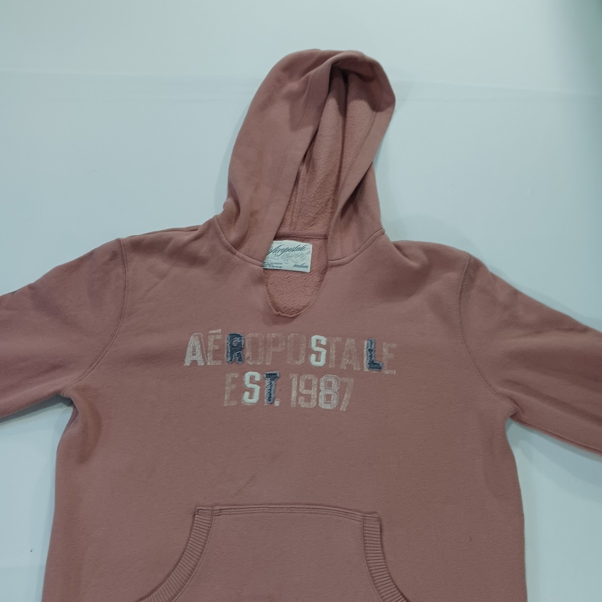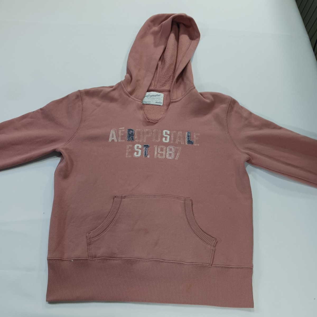 The Aeropostale Hoodie in Women's Size Medium is a stylish and comfortable pullover sweatshirt in a vibrant coral color. Made from a blend of polyester and cotton with a fleece fabric type, this hoodie features long sleeves, a full zip closure, and a hood for added warmth. The sweatshirt is adorned with embroidered accents and a logo, perfect for adding a touch of style to your activewear collection. With its solid pattern, all-season versatility, and practical features like pockets, this hoodie is a must-have for any active woman's wardrobe.