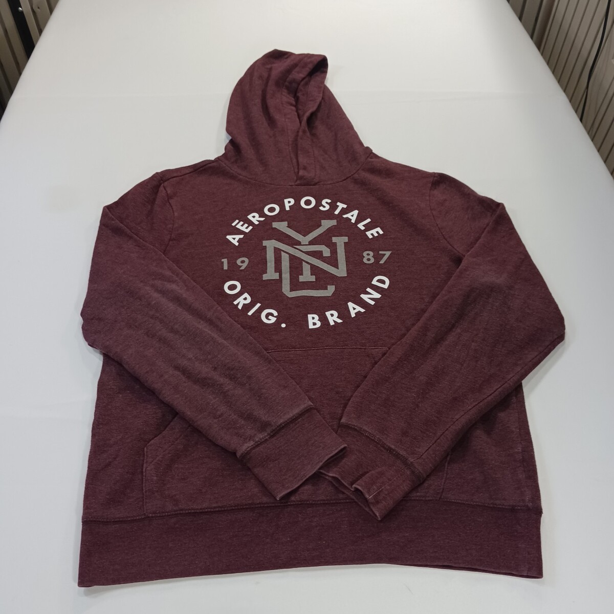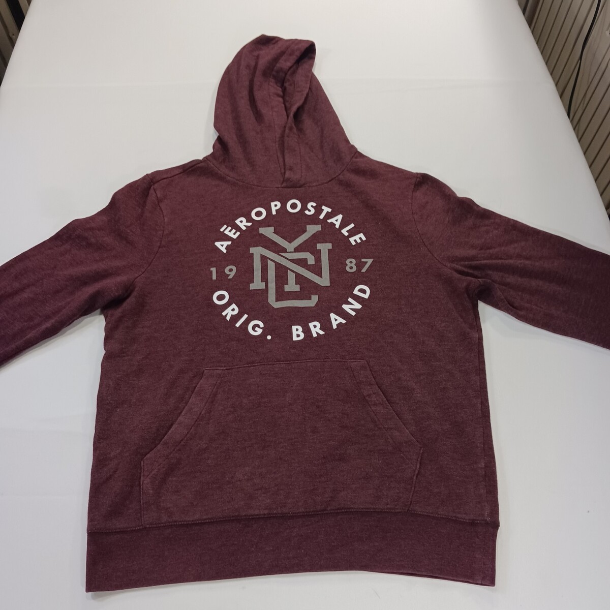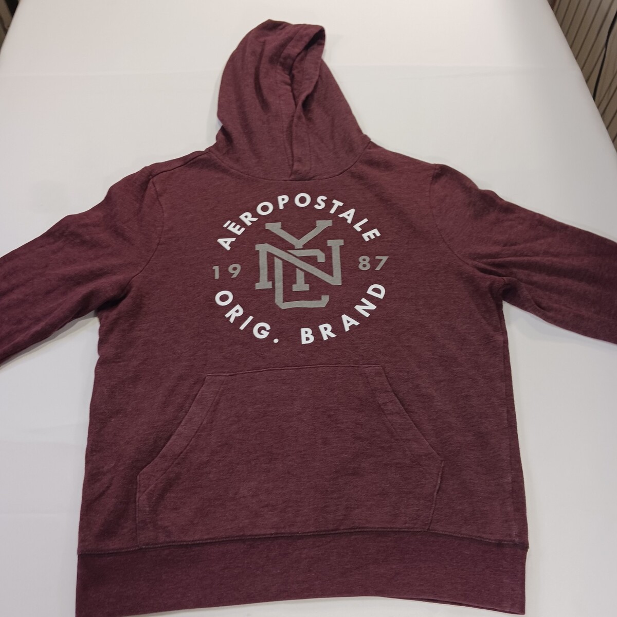 The Aeropostale Original Brand RN#121726 Women’s Red Hoodie Pullover Sweatshirt XL is a stylish and comfortable activewear piece perfect for the winter, fall, and spring seasons. Made from a blend of polyester, cotton, and a cotton fleece lining, this hoodie features a solid red color with a logo accent. The pullover style with a hood makes it easy to throw on for any casual or active occasion, with a chest size of 47 inches and a regular fit for a comfortable feel. Ideal for walking and other outdoor activities, this Aéropostale hoodie is a versatile addition to any woman's wardrobe.