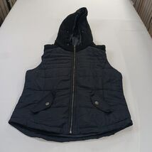 The Aeropostale RN#121726 Women's Black Full Zip Vest with Woven Hoodie in size XL is a stylish and versatile activewear piece perfect for women on the go. Made from a comfortable polyester blend and featuring a full zip closure, this sleeveless vest is ideal for layering during outdoor activities or casual outings. The black color and solid pattern make it easy to mix and match with other items in your wardrobe, while the woven hoodie adds a trendy touch to the overall look. The Aeropostale brand ensures quality and durability, making this vest a great addition to any woman's activewear collection.