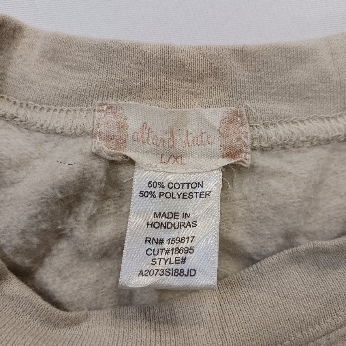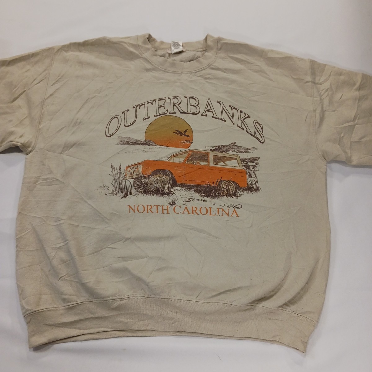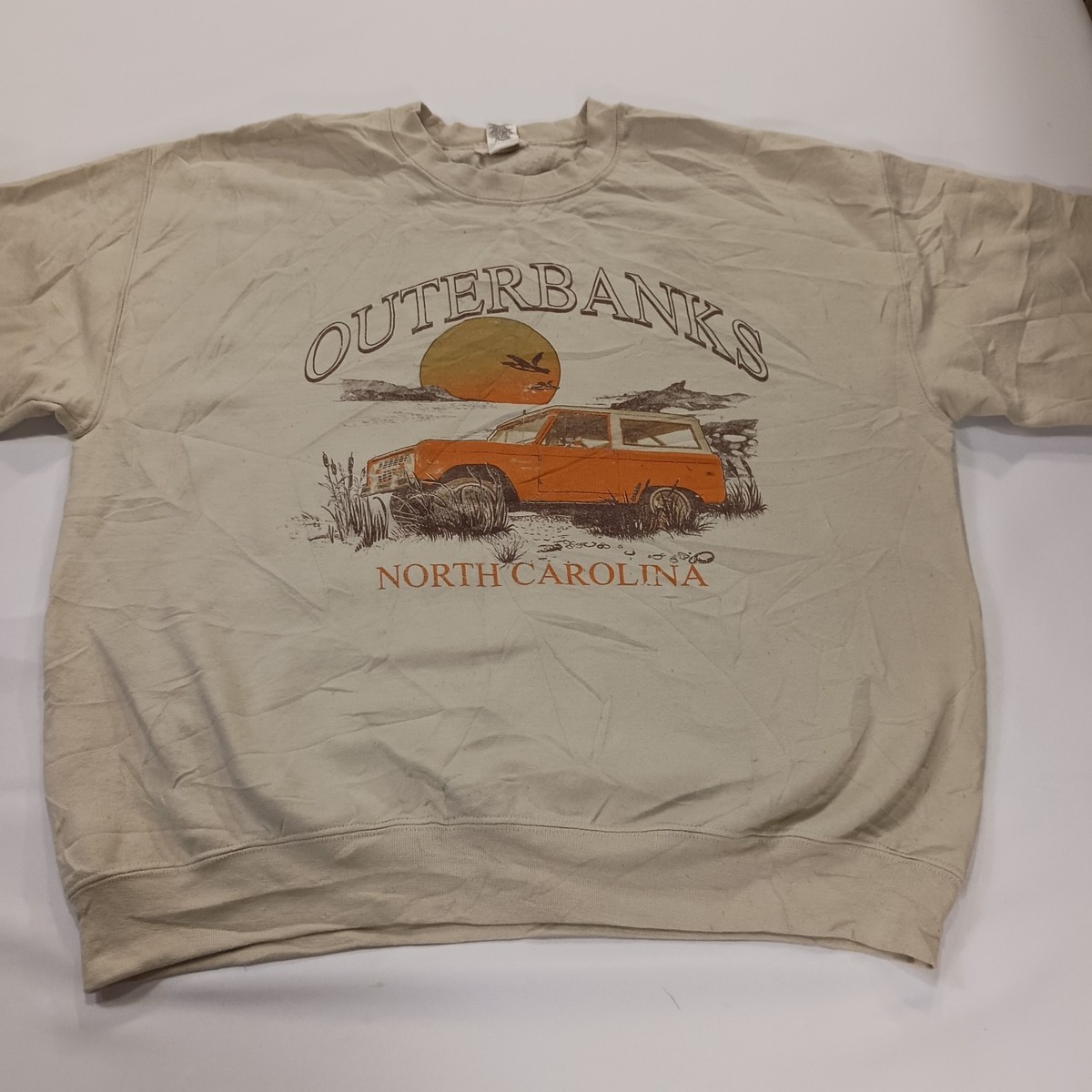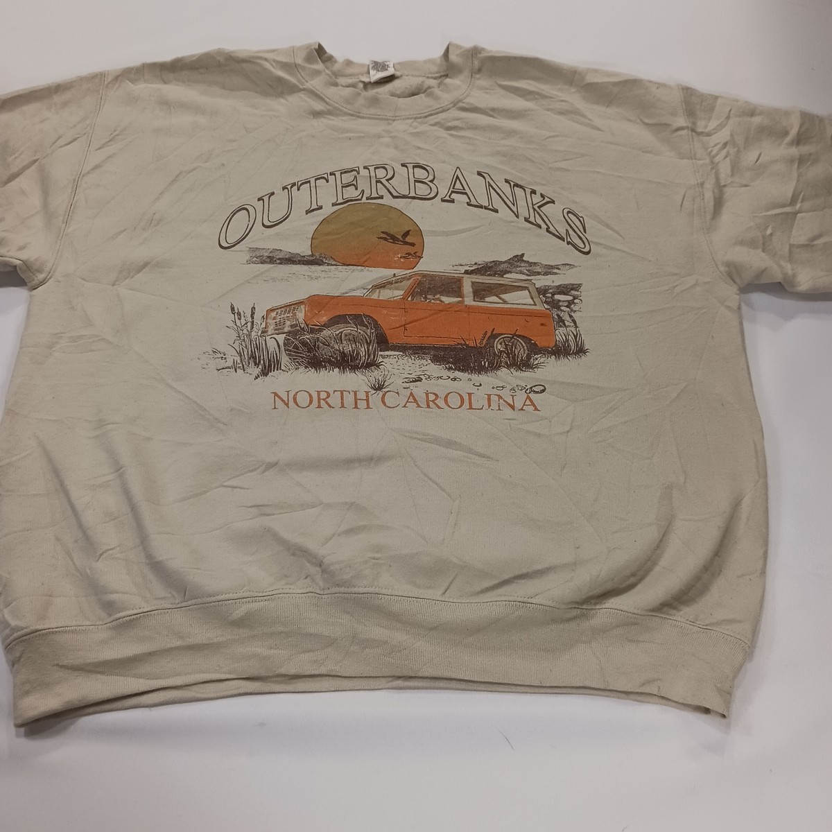 The Altard State Outer Banks North Carolina Men's Tan Pullover Sweatshirt in size L/XL is a stylish and comfortable piece perfect for travel. Made from fleece fabric with an embroidered logo, this sweatshirt features a crew neckline and long sleeves, making it suitable for the winter, fall, and spring seasons. The beige color and solid pattern add a classic touch, while the regular fit ensures a comfortable and easy-care garment that can be machine washed. Whether you're running errands, hitting the gym, or heading to school, this sweatshirt is a versatile and practical choice for any occasion.