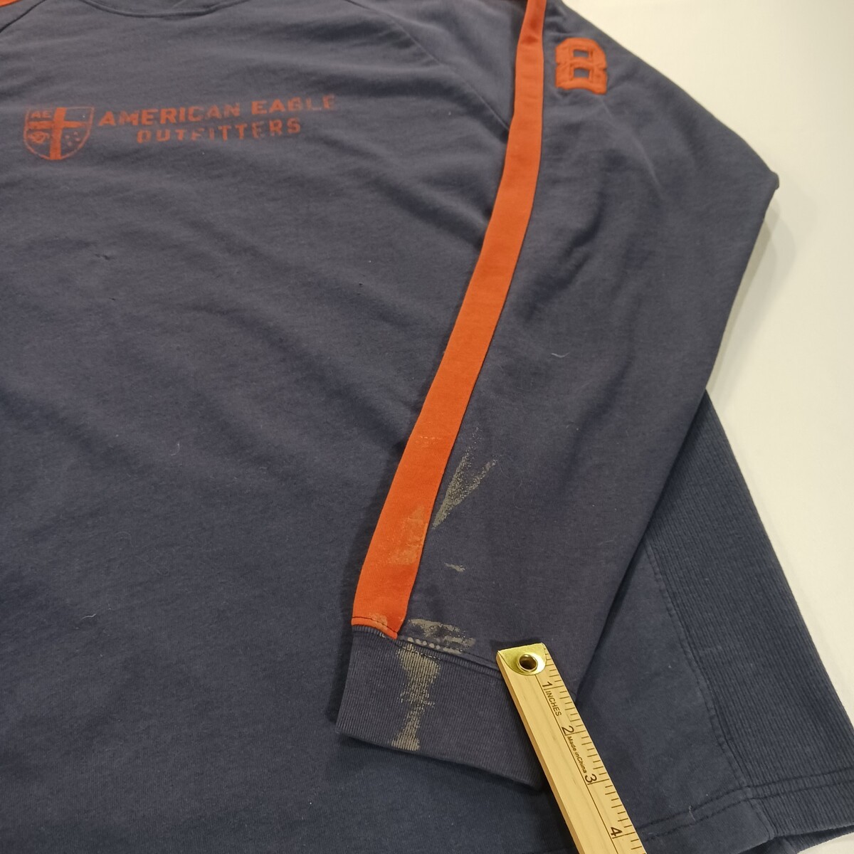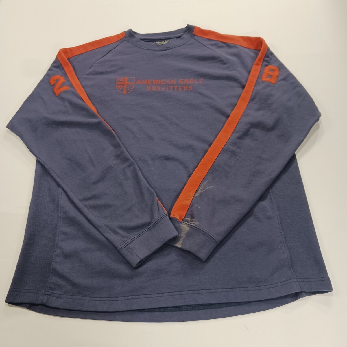 The American Eagle Outfitters Men's Faded Blue Crewneck Sweatshirt in size XL is a stylish and comfortable pullover sweatshirt designed for men. Made from a blend of polyester and cotton, this solid blue sweatshirt features a crew neck and long sleeves, making it a versatile and classic addition to any wardrobe. The athletic fit and all-season features make it perfect for everyday wear. The American Eagle Outfitters brand ensures quality and style, while the vintage-inspired design adds a trendy touch.