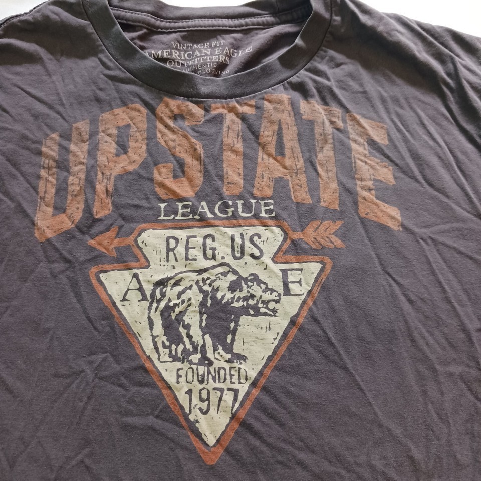 This American Eagle Outfitters T-shirt in gray is perfect for men who want to look stylish and feel comfortable. Made from high-quality cotton, it features a crew neckline and short sleeves, making it suitable for any casual occasion. The vintage fit adds a touch of uniqueness, while the graphic print adds a bit of personality.