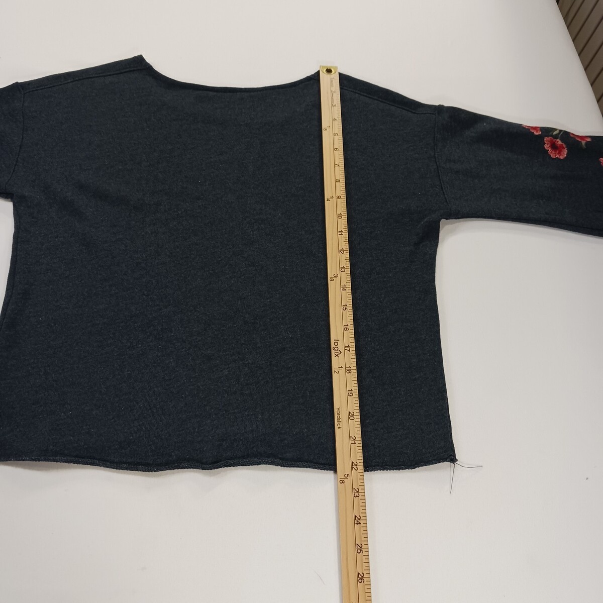 • American Eagle Outfitters Women's Gray Floral Sleeve Cropped Sweatshirt Sz Small image 13