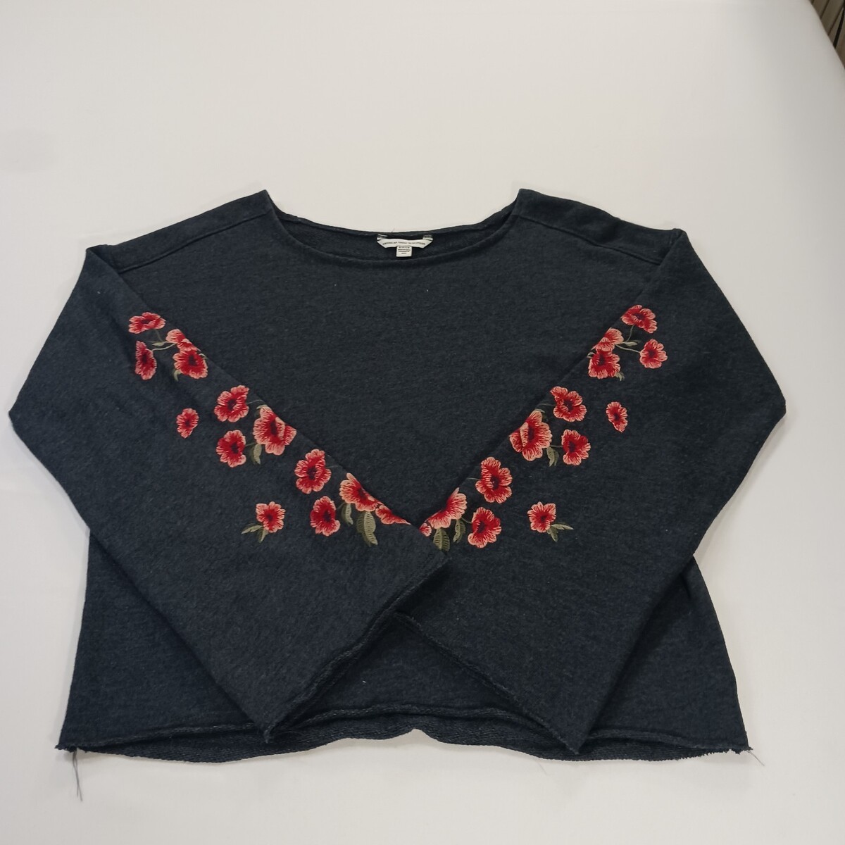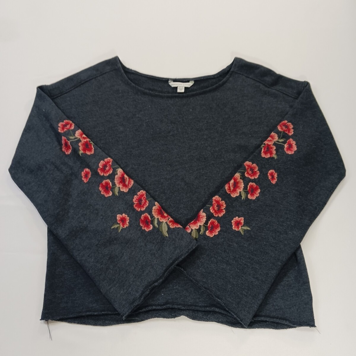 American Eagle Outfitters Women's Gray Floral Sleeve Cropped Sweatshirt Sz Small