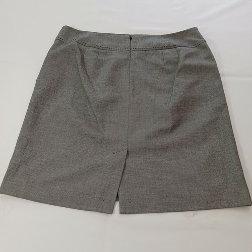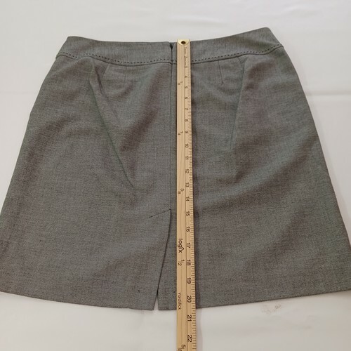 The skirt is 20.5 inches in length and has an A-line style, with a gray color and zipper accents. It's machine washable and easy to care for, making it a practical addition to any wardrobe. This skirt is perfect for India, or for any season - winter, summer, fall, or spring.