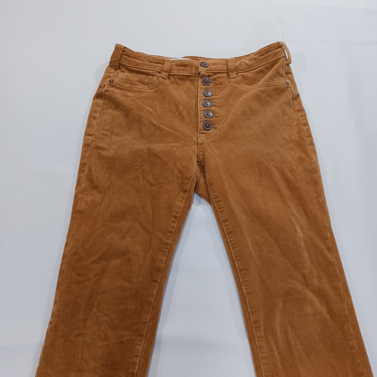 These Anthropologie Pilcro Women's Brown Cotton High Rise Skinny Corduroy Pants in size 27x25 are perfect for a variety of occasions, whether it's for travel, a party, or casual wear. The pants feature a solid pattern with a zip and button closure, made from a blend of spandex and cotton for comfort and stretch. The high-rise design and slim fit give a sleek and modern look, while the corduroy fabric adds a touch of texture. Ideal for the fashion-forward woman looking for a versatile and stylish addition to her wardrobe.