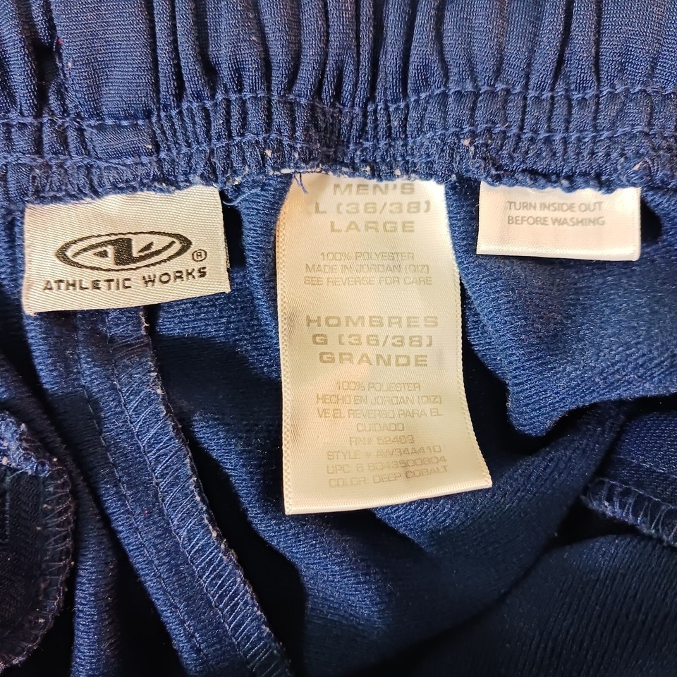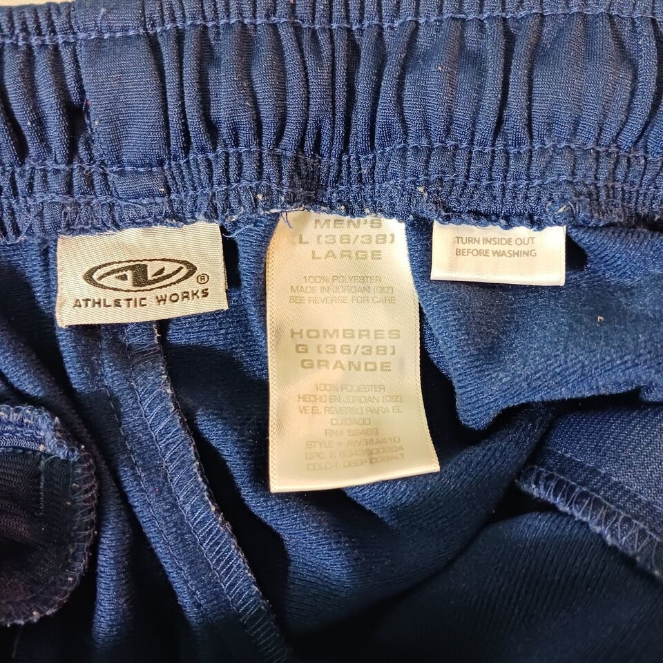 The solid blue color and knit fabric type make these pants a versatile addition to your wardrobe, and they're machine washable for easy care. With a waist size of 32 inches and inseam of 31 inches, these pants are designed for women and come in size L. The pants are part of the Athletic Works product line and feature functional drawstrings and pull-on closure. Get ready to feel healthier and more stylish in these jogger pants.