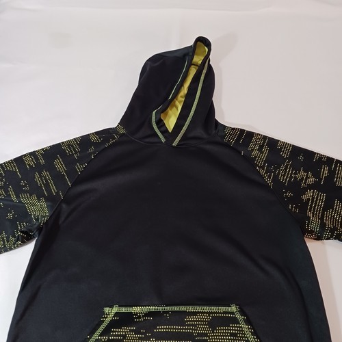 This Augusta Sportswear hoodie is designed for men in a size medium. The pullover style sweatshirt features a black and yellow color combination with a solid pattern. Made from a blend of polyester and cotton, this long sleeve hoodie is perfect for casual or activewear. With a comfortable regular fit, this hoodie is ideal for everyday wear and is made in China.