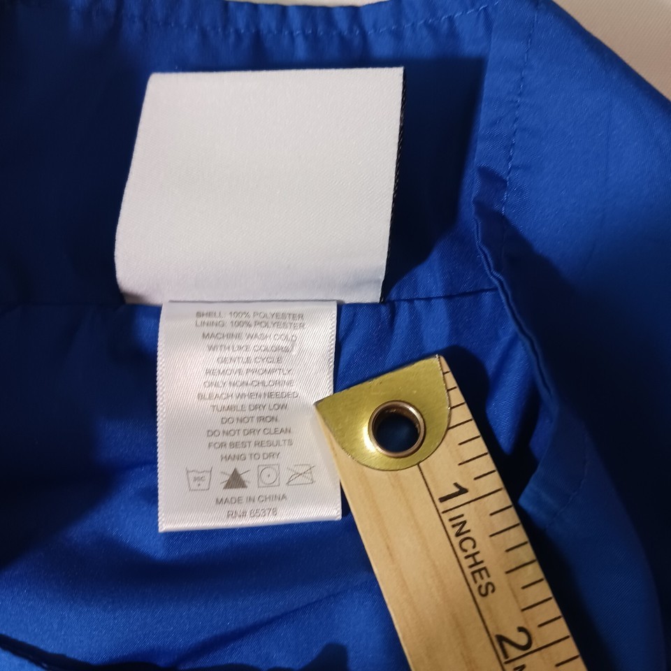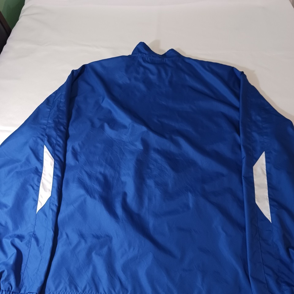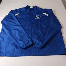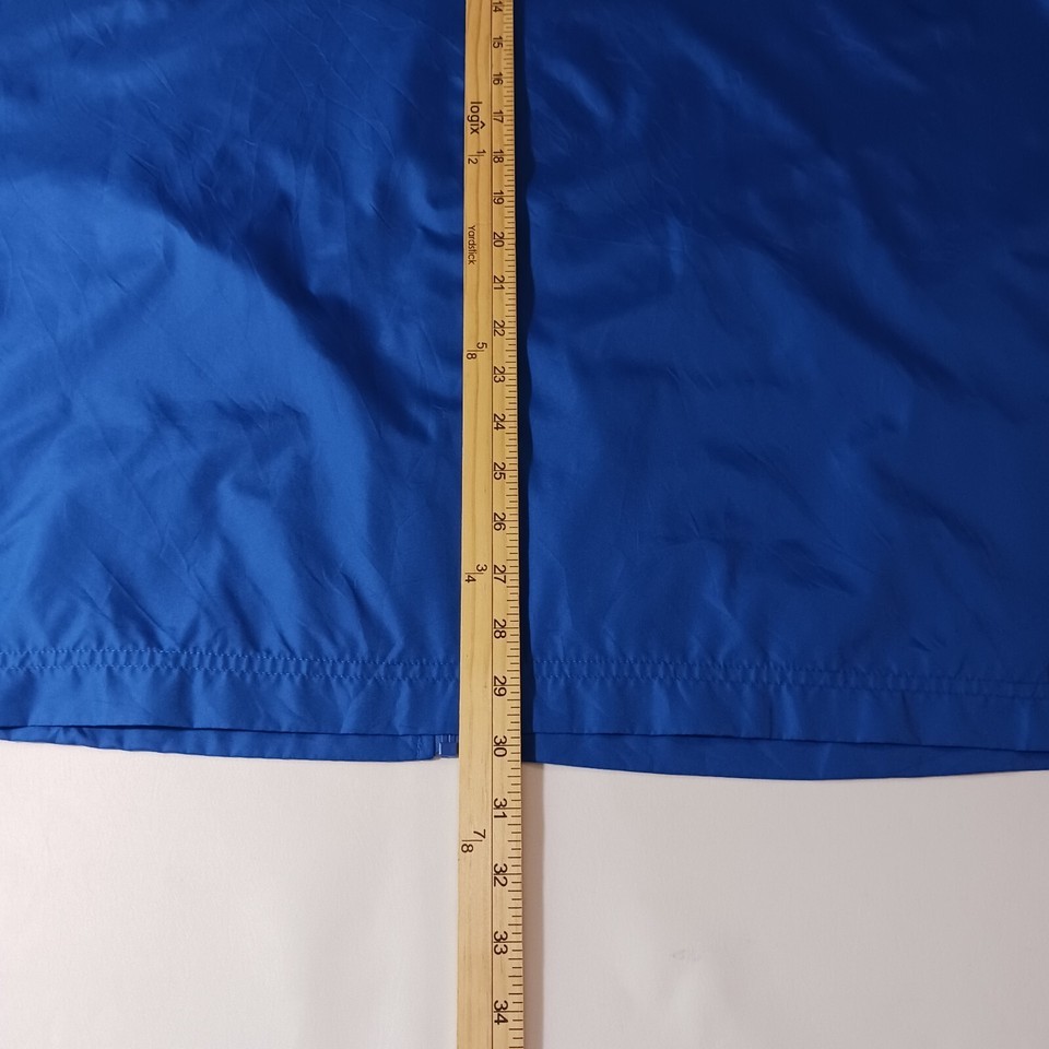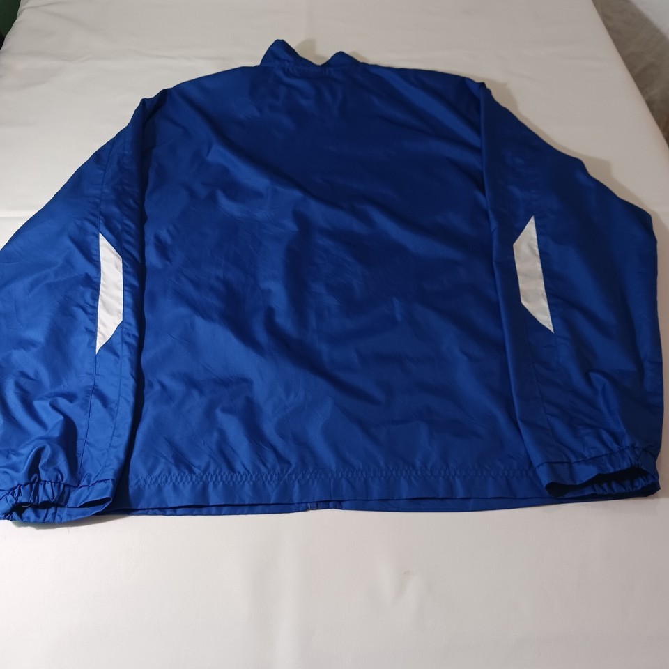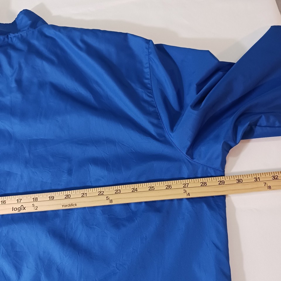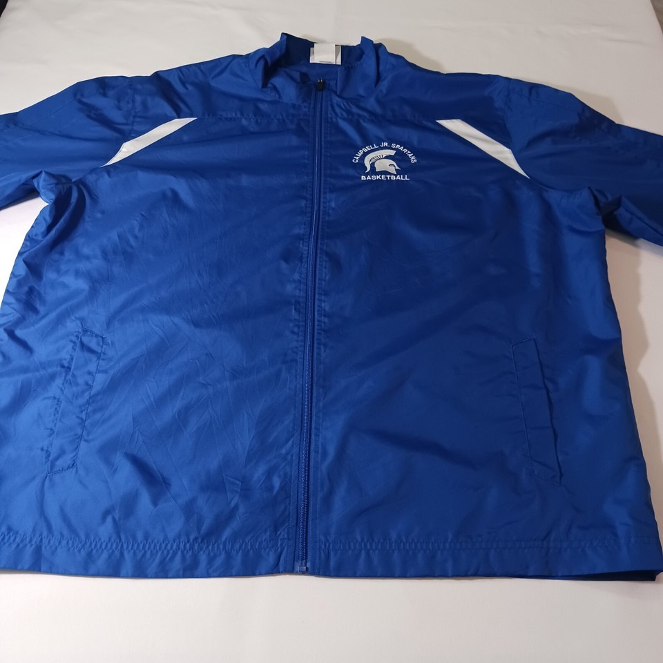 This Augusta Sportswear Campbell JR Basketball Men's Adult Sz 2XL Windbreaker Jacket is the perfect addition to your casual wardrobe. Made of durable polyester material, this jacket features a solid blue pattern and a zip closure. The jacket/coat length is 30 inches, and the chest size is 58 inches.