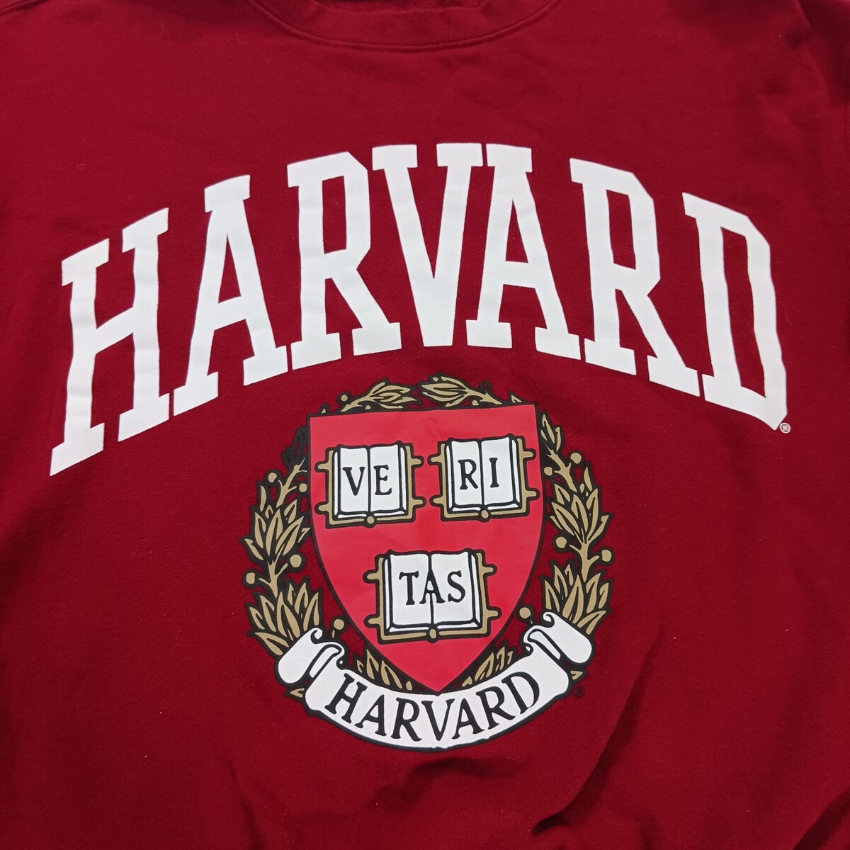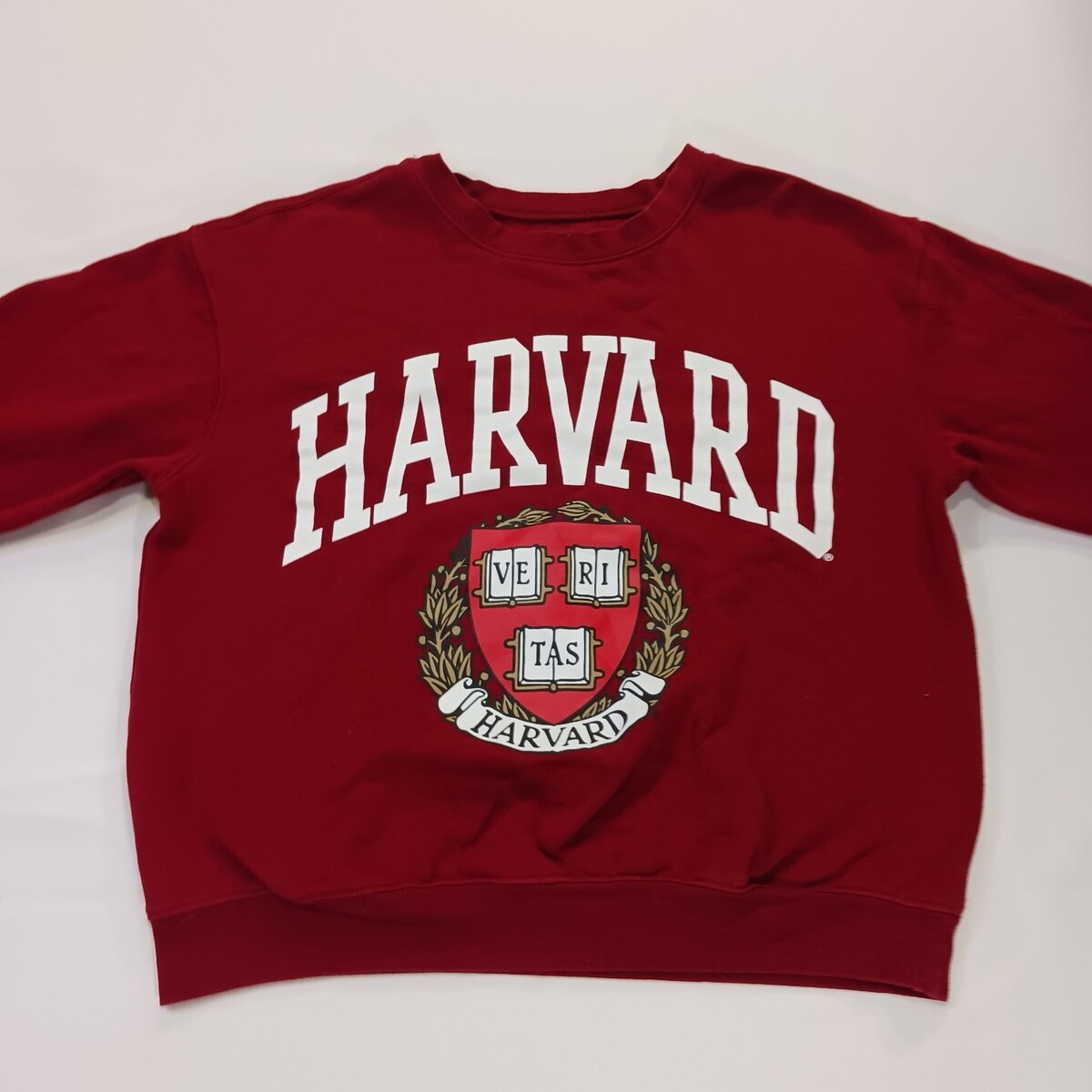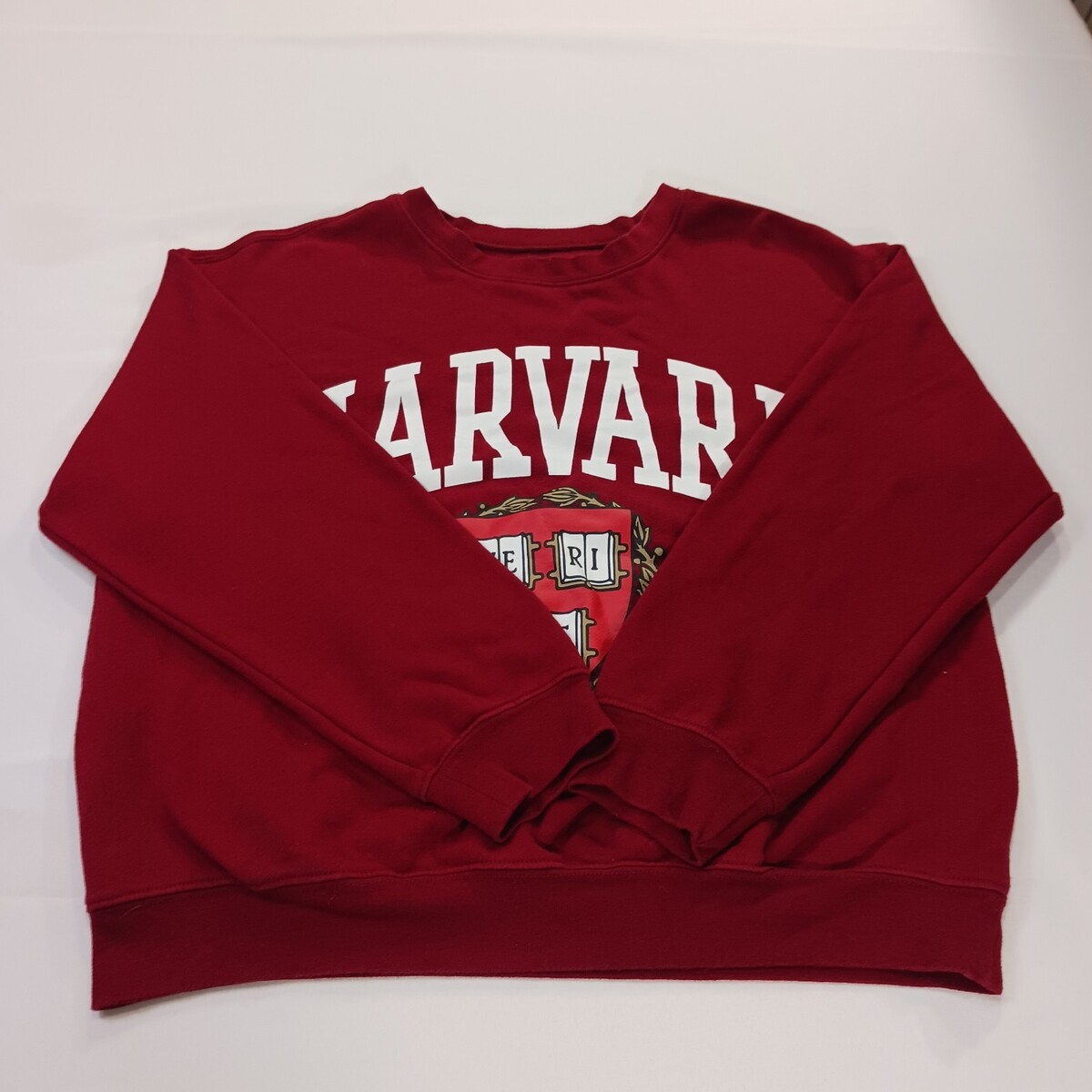 The product is a large women's red graphic sweatshirt featuring the colors and logo of Harvard University's Crimson team. It is officially licensed by the NCAA and made by the brand Hybrid-Jem. The sweatshirt is perfect for representing the team during the regular season and is a great addition to any fan's collection. Made in China, this sweatshirt is a stylish and comfortable way to show support for Harvard University's athletic program.