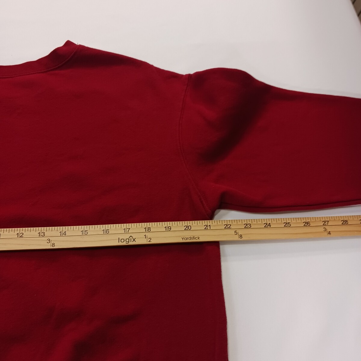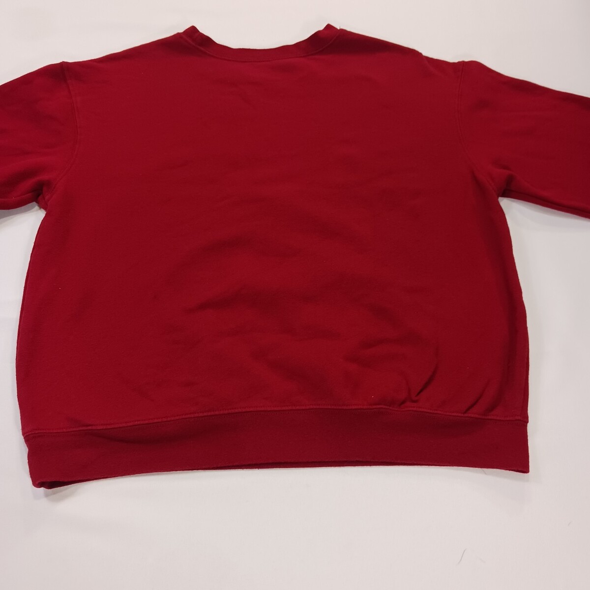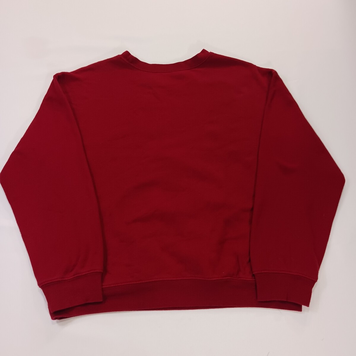 The product is a large women's red graphic sweatshirt featuring the colors and logo of Harvard University's Crimson team. It is officially licensed by the NCAA and made by the brand Hybrid-Jem. The sweatshirt is perfect for representing the team during the regular season and is a great addition to any fan's collection. Made in China, this sweatshirt is a stylish and comfortable way to show support for Harvard University's athletic program.