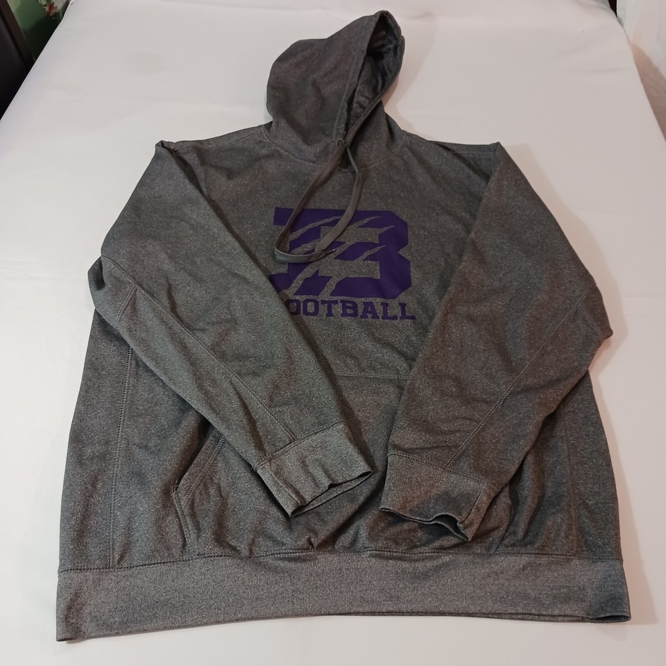 The BSN Sports FOOTBALL Men's Gray Drawstring Hoodie Pullover Sweatshirt in size XL is a comfortable and stylish option for football fans. Made in China, this hoodie features a drawstring hood and a pullover design for easy wear. The gray color adds a versatile touch, making it suitable for everyday wear or showing support for your favorite football team. Designed specifically for men, this hoodie is a great choice for staying warm and cozy during cooler weather while still showcasing your love for the sport.