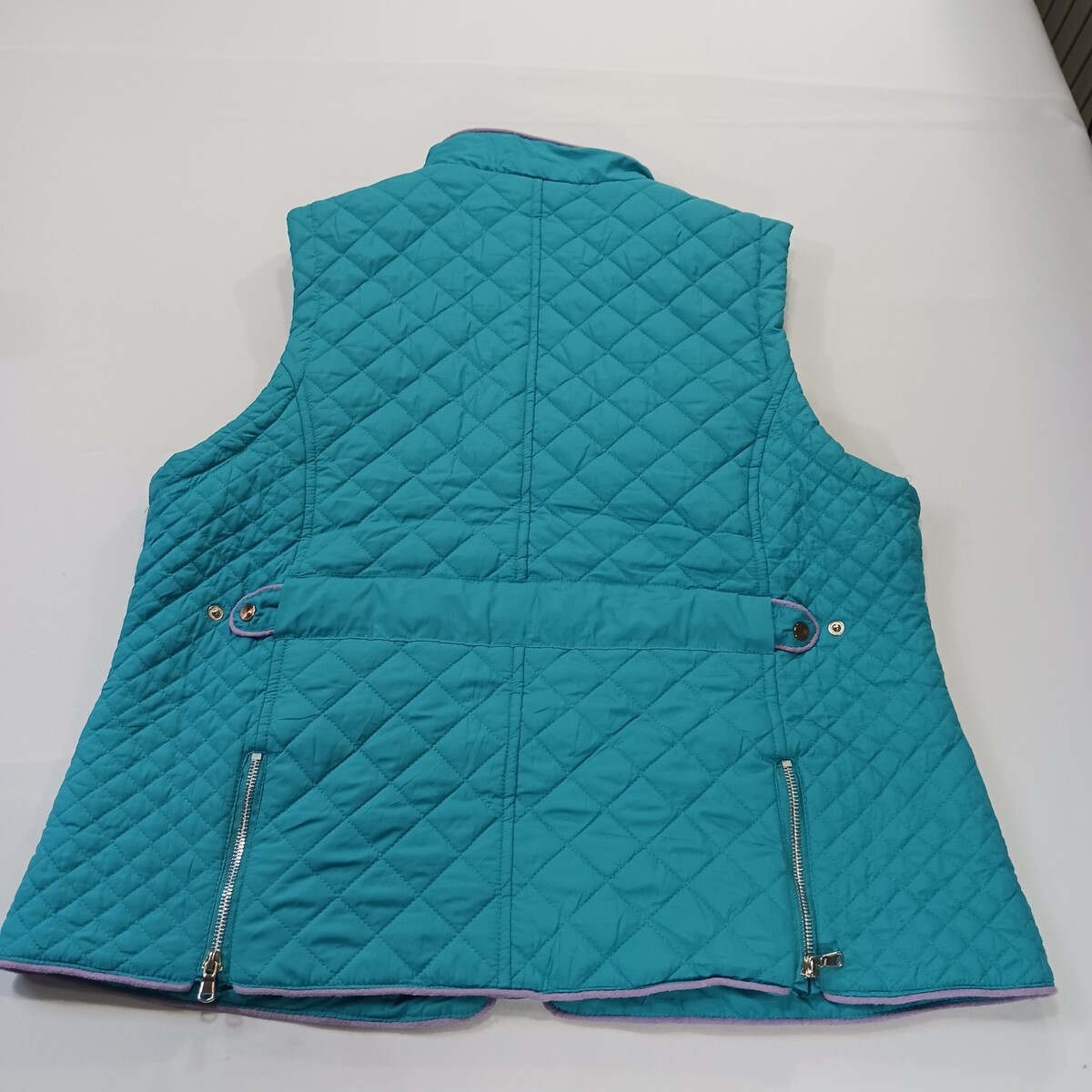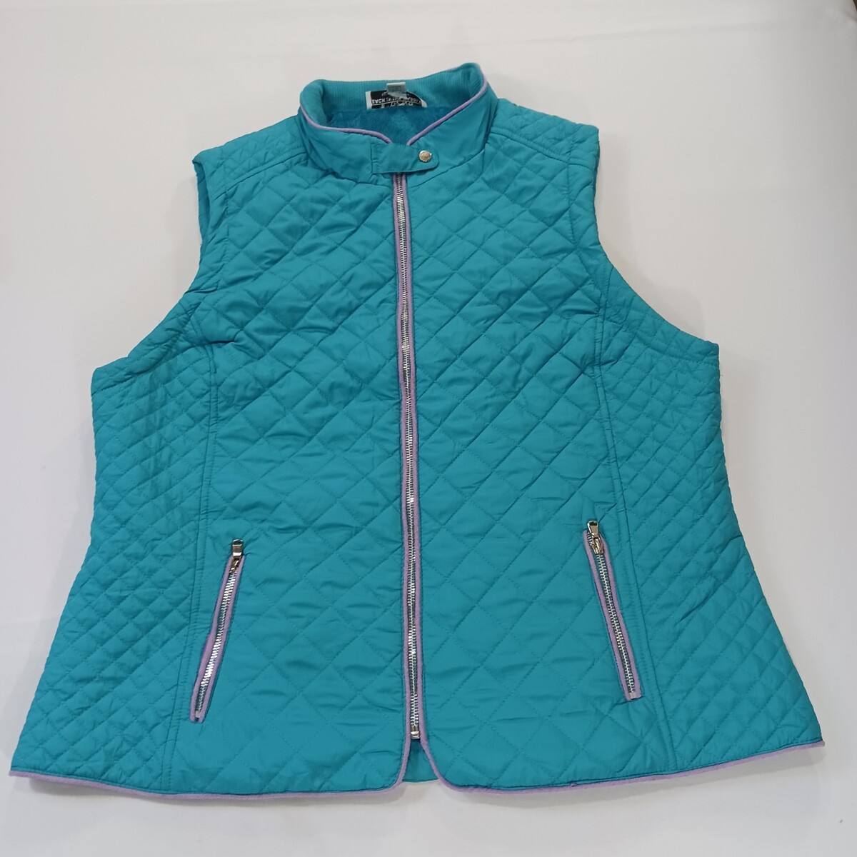 The Back in the Saddle Women's 1X Turquoise Quilted Riding Vest is a stylish and functional outerwear piece perfect for casual occasions in the winter, fall, or spring. Made from polyester with a cozy fleece lining and quilted accents, this sleeveless vest features a solid black color with a touch of turquoise. The vest includes lined pockets for added convenience and is machine washable for easy care. Perfect for those who appreciate a Western-inspired look and need a versatile piece to keep them warm and stylish during outdoor activities.