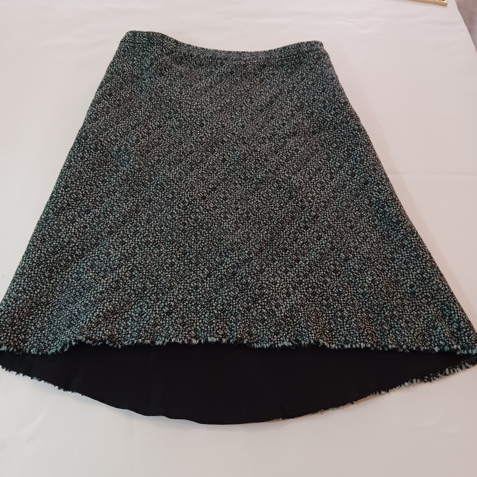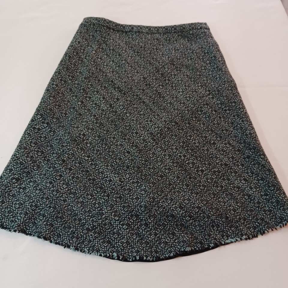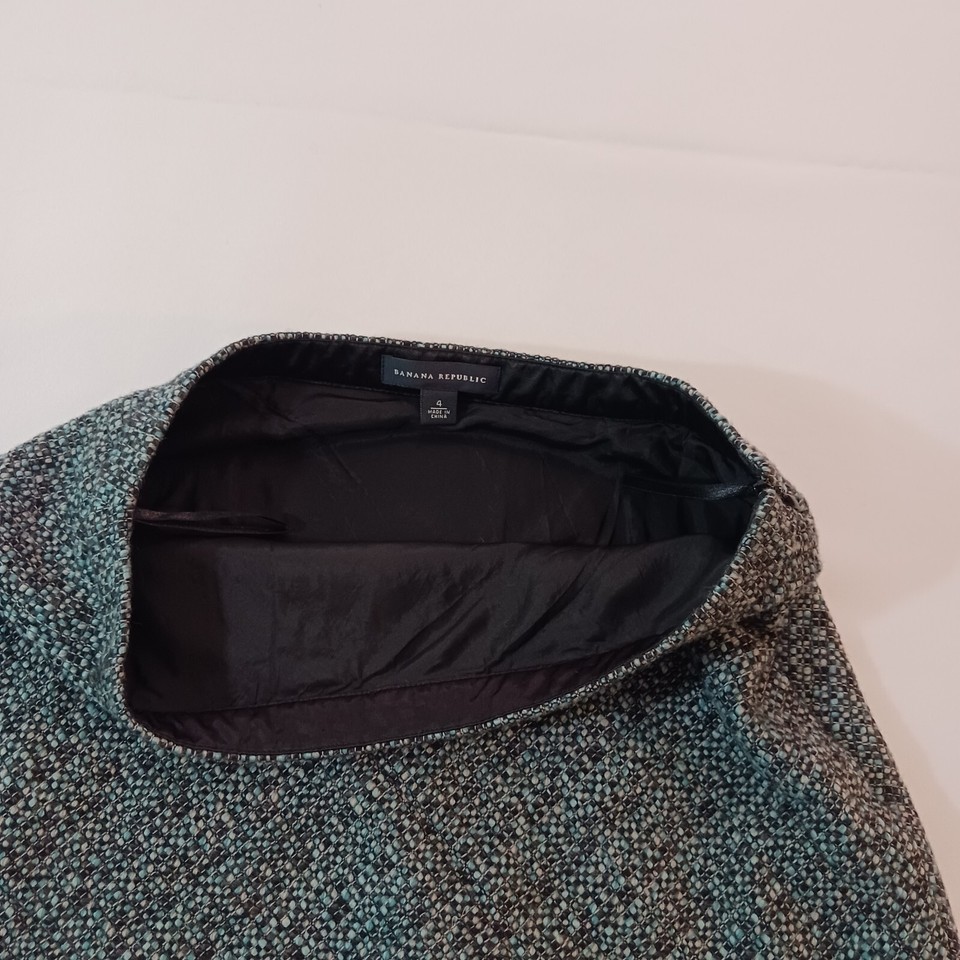 This Banana Republic skirt is perfect for any occasion, whether it's a casual day out or a formal event. The skirt is made of a combination of wool, acrylic, nylon, and acetate materials, and features a green and black color scheme. It has a zip closure and is lined for added comfort.