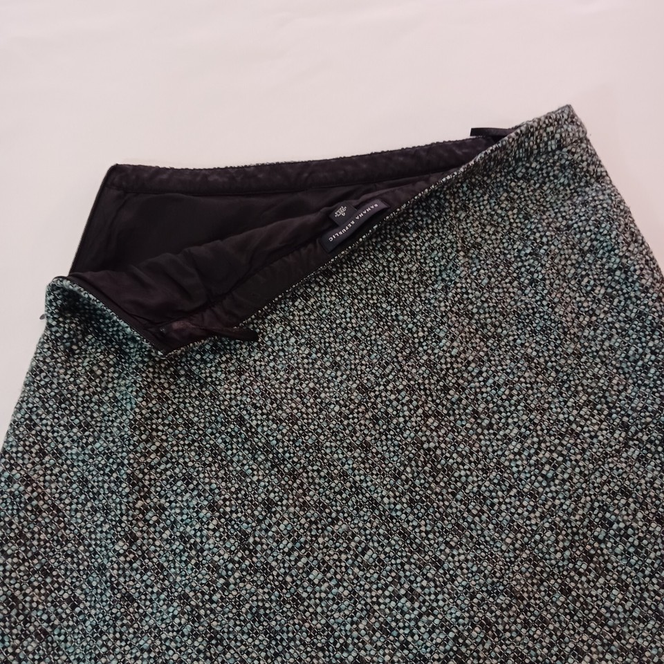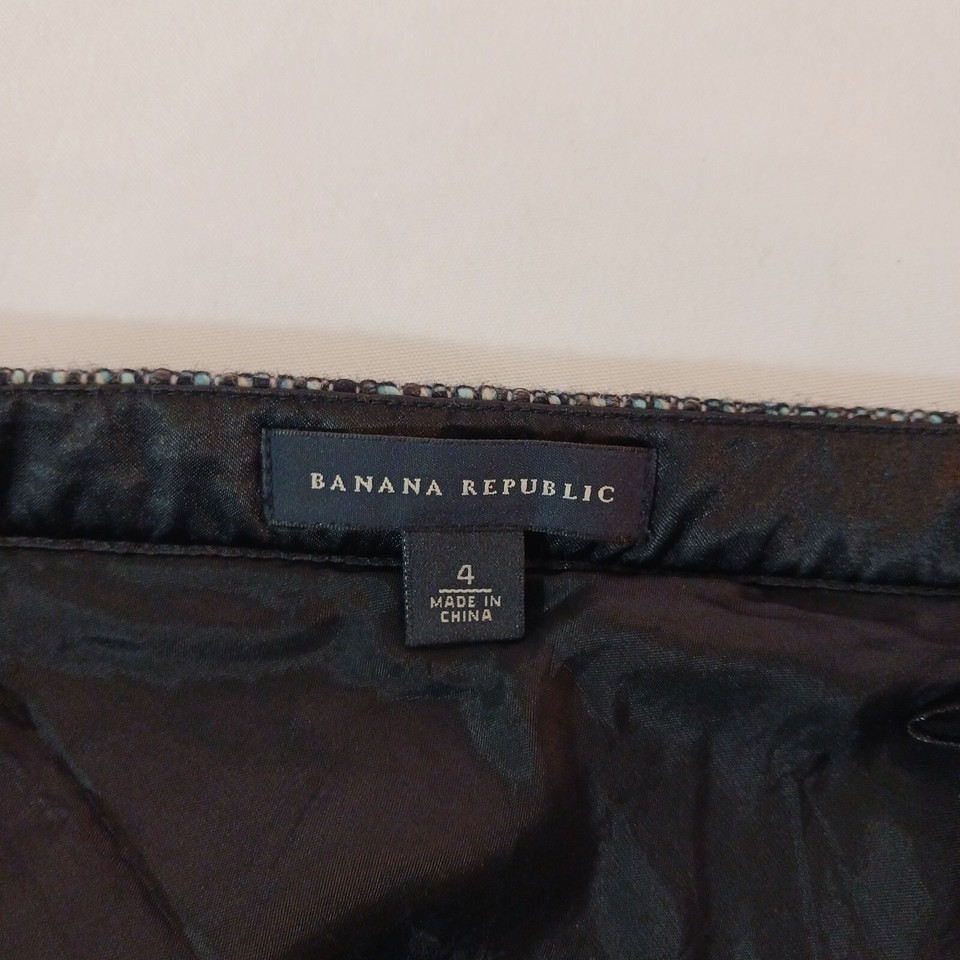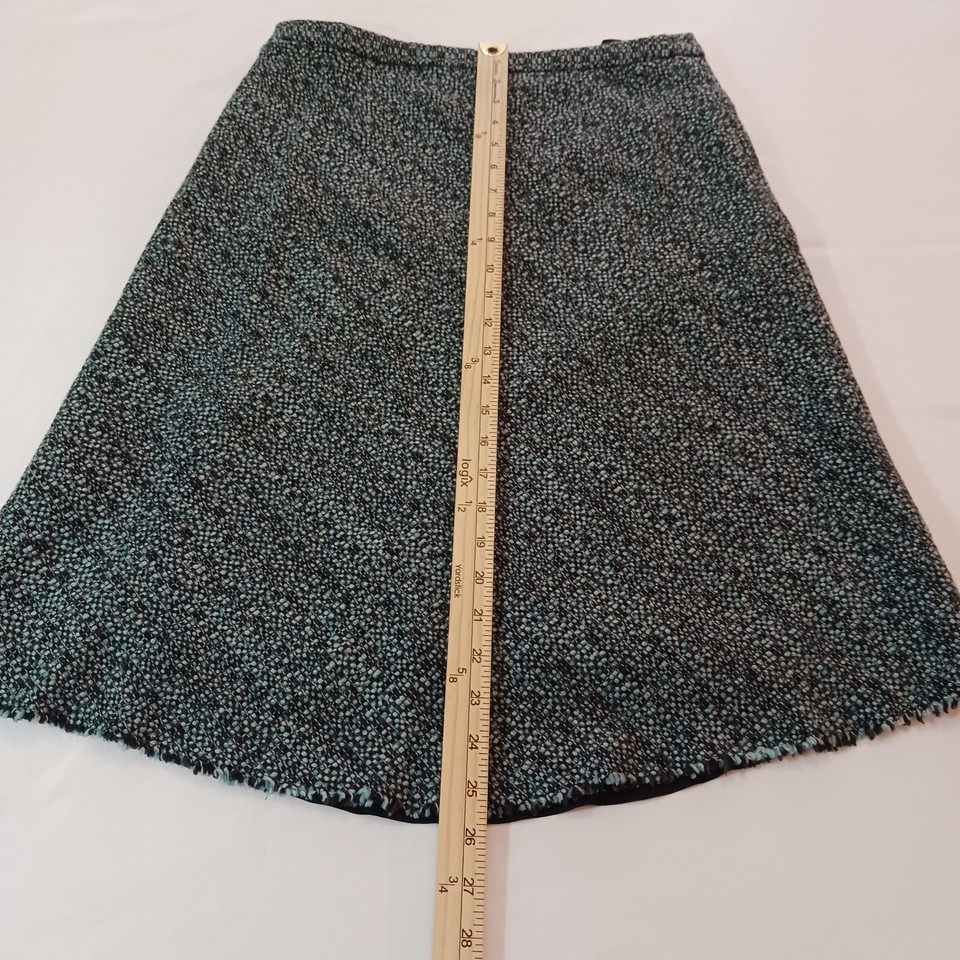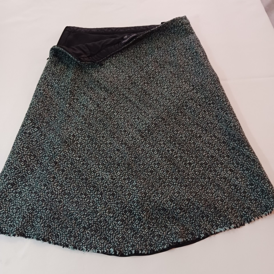 This Banana Republic skirt is perfect for any occasion, whether it's a casual day out or a formal event. The skirt is made of a combination of wool, acrylic, nylon, and acetate materials, and features a green and black color scheme. It has a zip closure and is lined for added comfort.