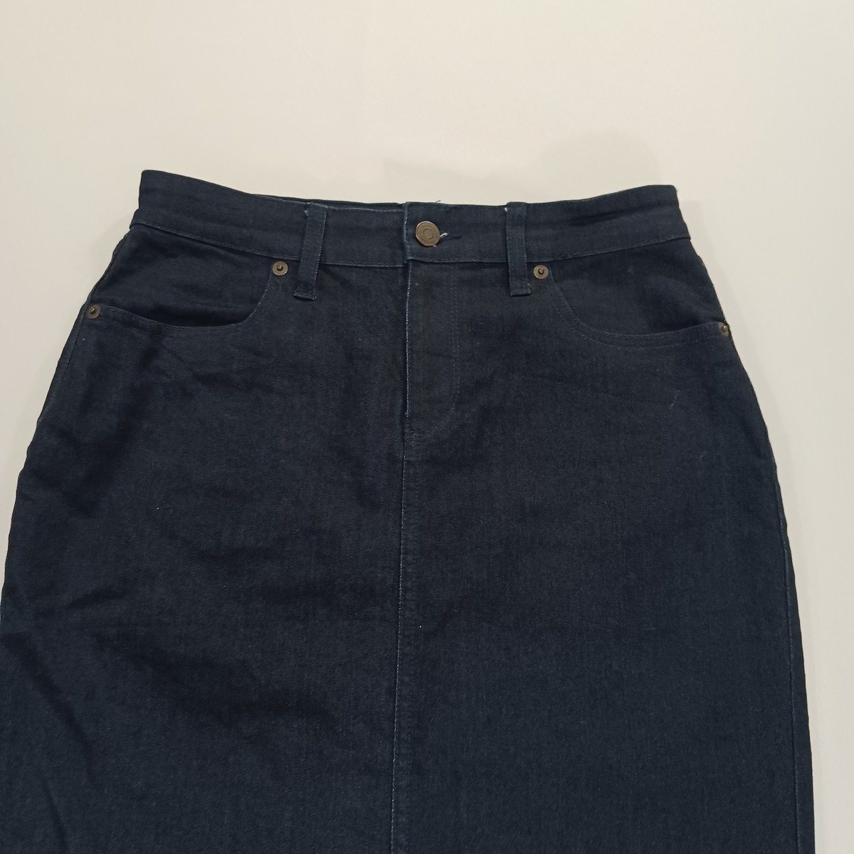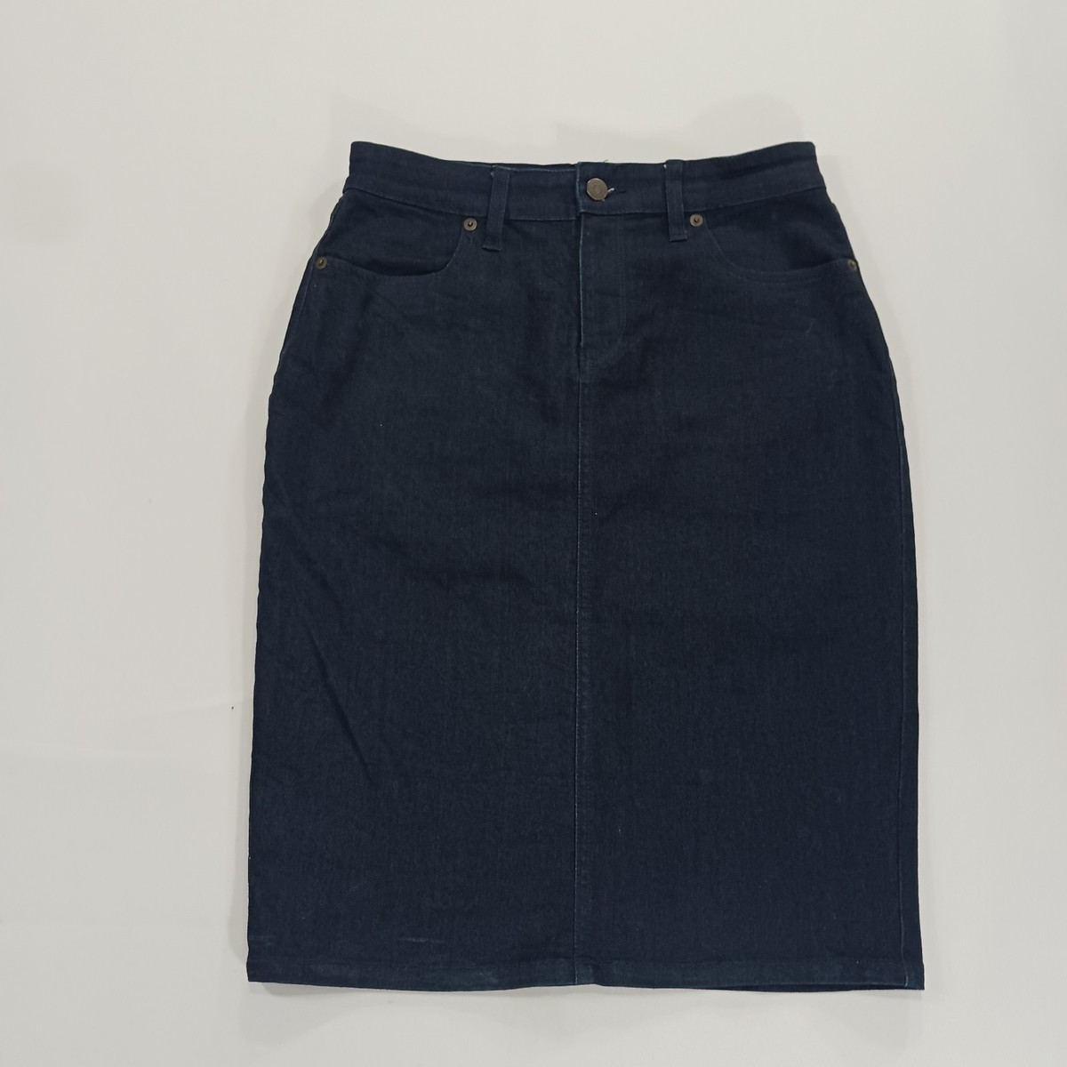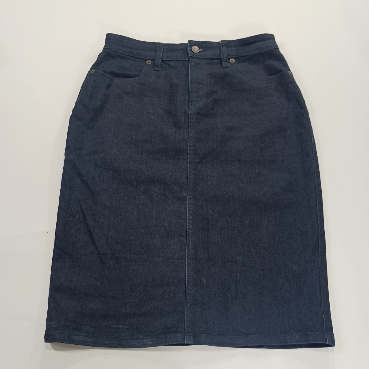 The Banana Republic Women's Blue Cotton Blend Denim Skirt (RN#54023) in size 2 with a waist of 27 inches is a versatile and stylish piece suitable for casual, workwear, and business occasions. Made from a comfortable cotton blend material with a solid pattern, this skirt features a zip closure, mid-rise, and straight & pencil style. It is machine washable and has subtle accents like buttons and zippers. Perfect for all seasons and with a skirt length of 23 inches, this Banana Republic skirt is a timeless and practical addition to any woman's wardrobe.