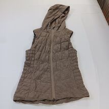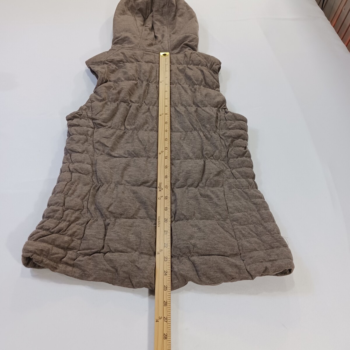 The Blanc Noir Vest is a stylish and functional addition to any woman's wardrobe. Made from polyester with a quilted design, this brown vest features a full zip closure, lined interior, and insulated material for added warmth. Perfect for various occasions like travel, parties, or casual outings, this vest also includes convenient pockets and a hood for added versatility. With a regular fit and breathable fabric, this puffer jacket is ideal for outdoor activities in the winter, fall, or spring seasons.