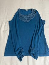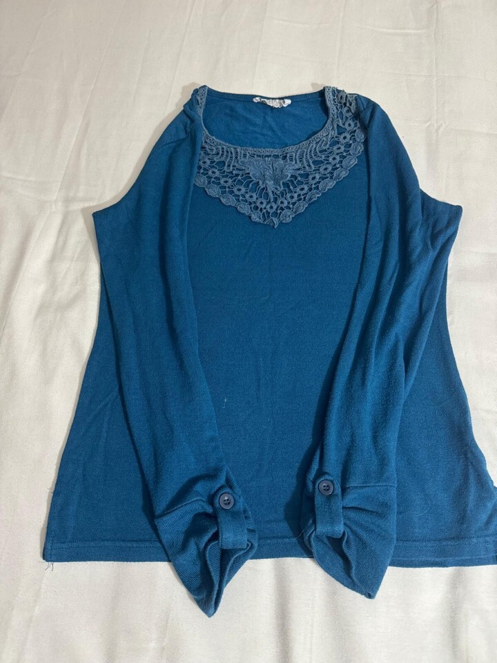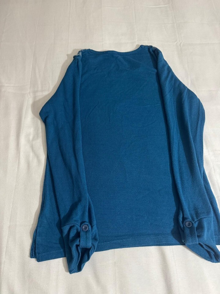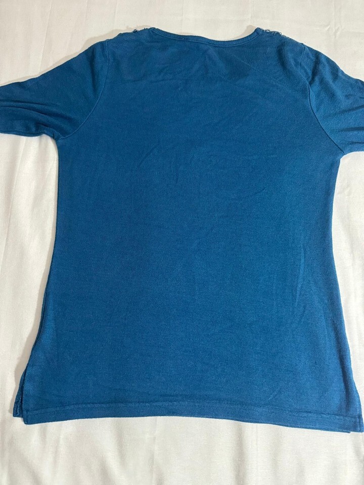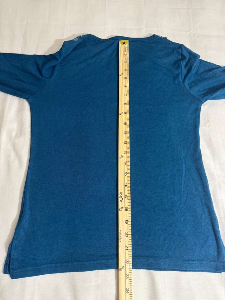 This women's top by Beta's Choice comes in a vibrant turquoise color with a round neck and long sleeves, making it a versatile choice for travel, casual outings, or work. The pullover style top has a solid pattern with beaded accents, adding a touch of flair to the knit fabric made of polyester, spandex, and viscose. With a regular fit and a measured chest size of 34", this shirt is machine washable and features a stretchy material, making it a comfortable and stylish option for any season.