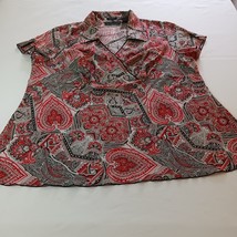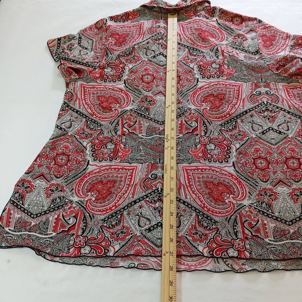 Made of polyester and spandex, this blouse is comfortable and stretchy, making it a perfect fit for regular size women. The red and gray color combination is versatile and suitable for any season. This blouse is a great choice for those who are looking for a basic wardrobe essential with a touch of style.