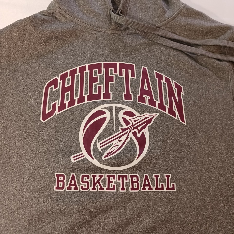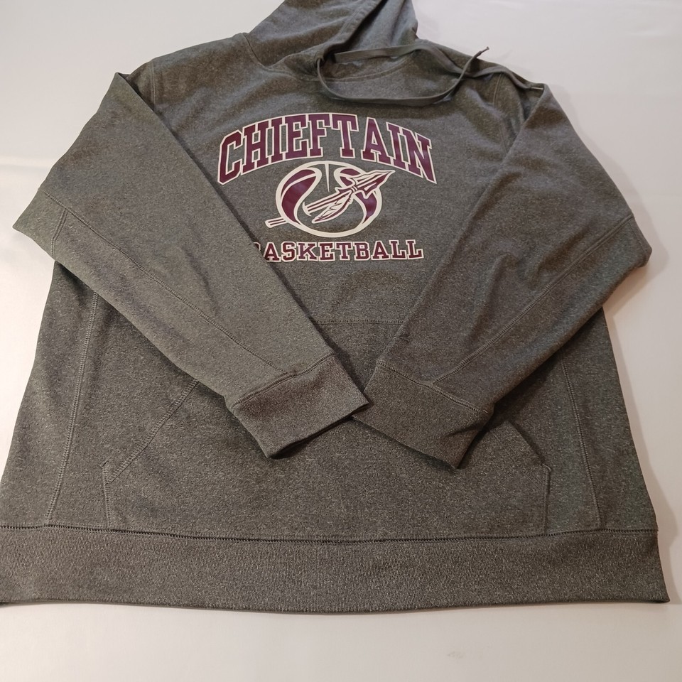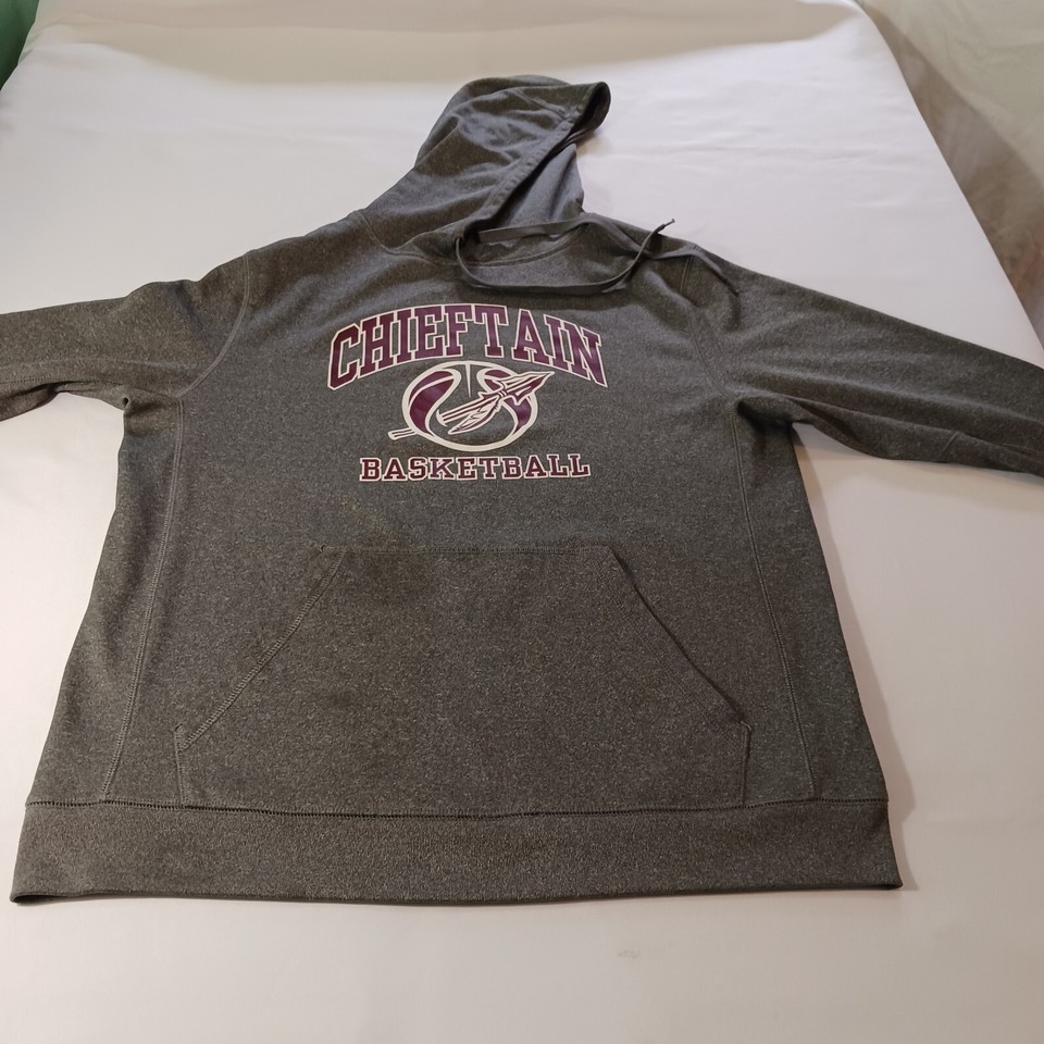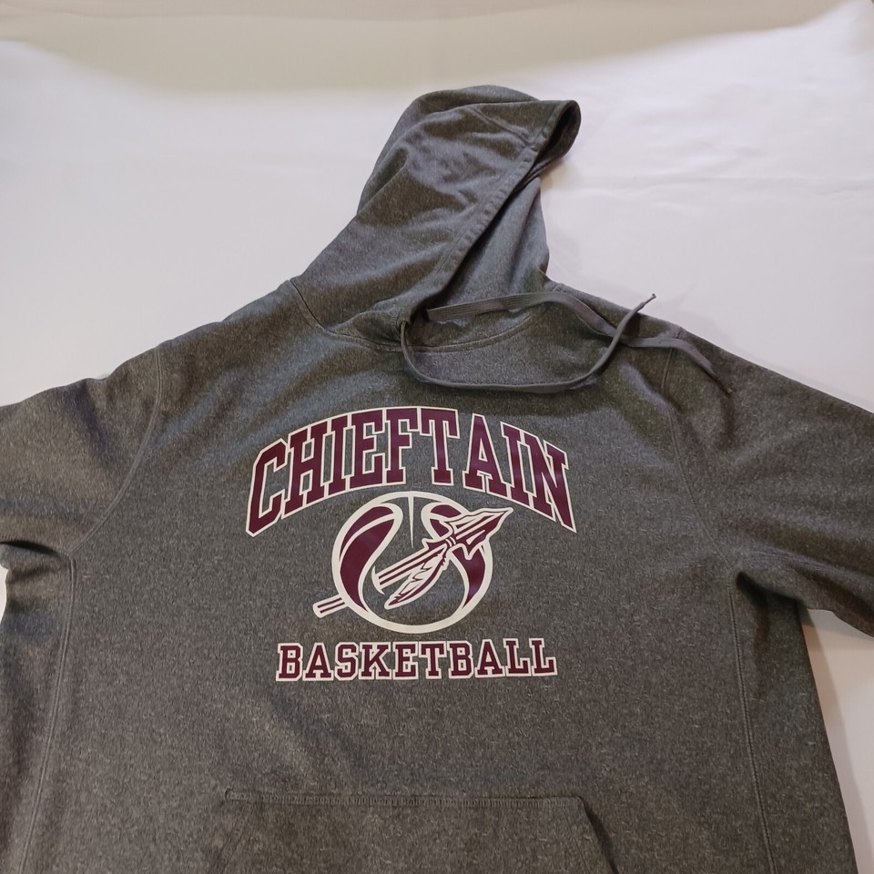 Elevate your sportswear game with this BSN Sports CHIEFTAIN BASKETBALL Men's Gray Hoodie Pullover Sweatshirt in size M. Perfect for any sports activity, this hoodie features a drawstring closure and long sleeves for a comfortable fit. The graphic print on the front adds a touch of style to this otherwise classic piece.