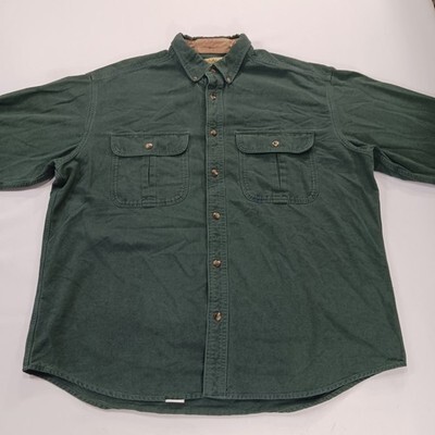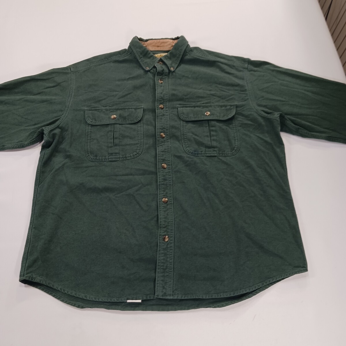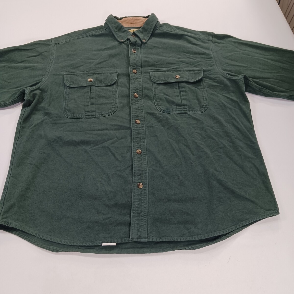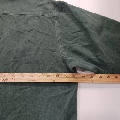 The Cabela’s Deerskin Soft Chamois Cloth Men’s L Green Cotton Short Sleeve Shirt is a stylish and comfortable casual button-down shirt perfect for outdoor occasions. Made from cotton with a soft chamois cloth finish, this shirt features a solid green color, collared neckline, and button closure. With a regular fit and size L chest, it is easy to care for with machine washable instructions. Additionally, the shirt includes pockets for added functionality, making it a versatile and practical choice for fall seasons.