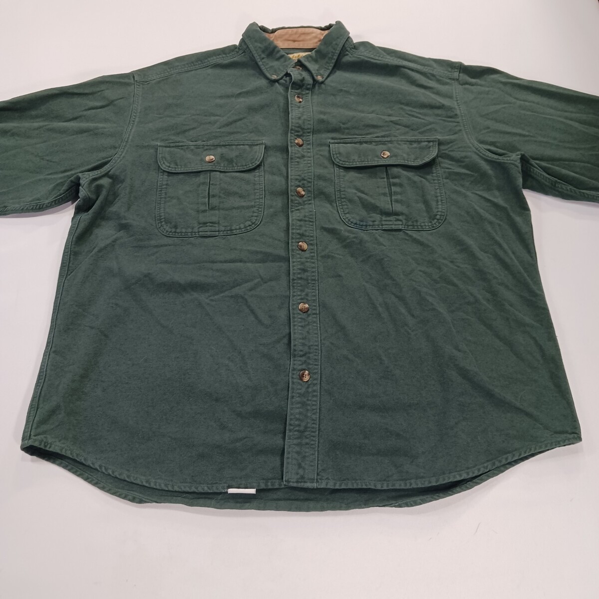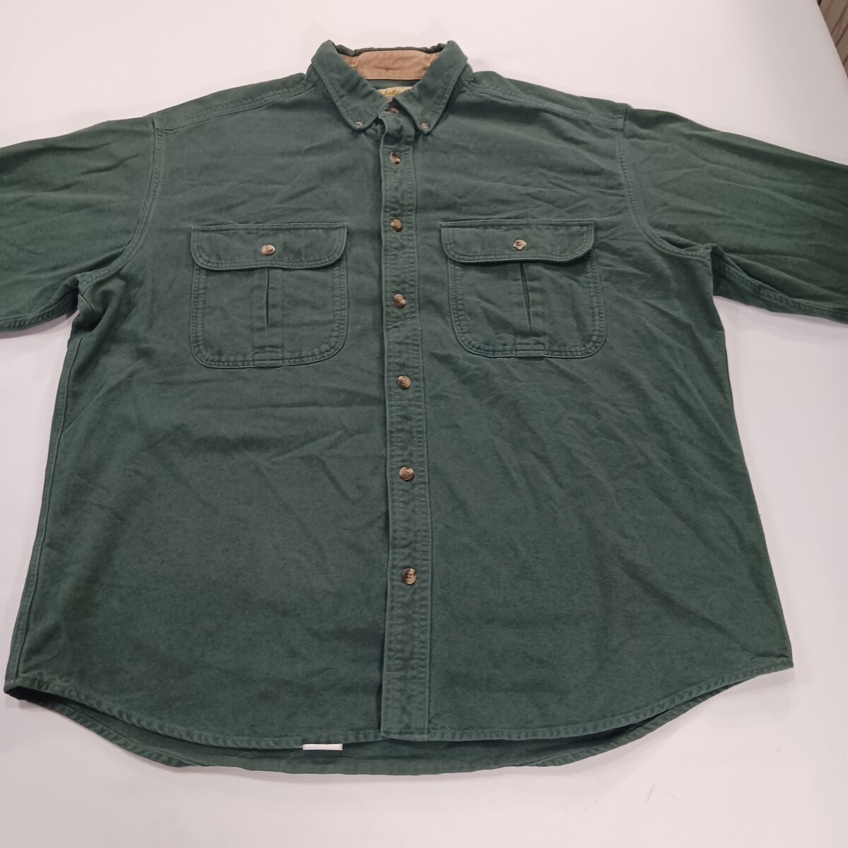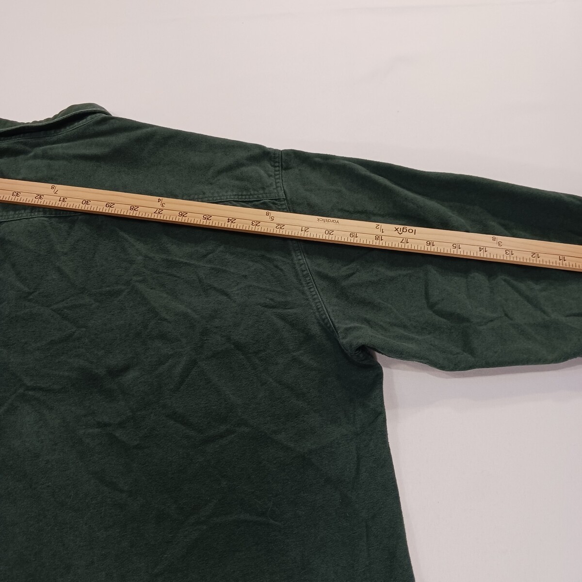 The Cabela’s Deerskin Soft Chamois Cloth Men’s L Green Cotton Short Sleeve Shirt is a stylish and comfortable casual button-down shirt perfect for outdoor occasions. Made from cotton with a soft chamois cloth finish, this shirt features a solid green color, collared neckline, and button closure. With a regular fit and size L chest, it is easy to care for with machine washable instructions. Additionally, the shirt includes pockets for added functionality, making it a versatile and practical choice for fall seasons.