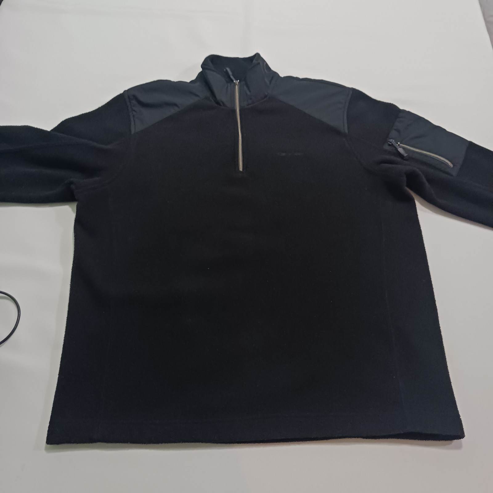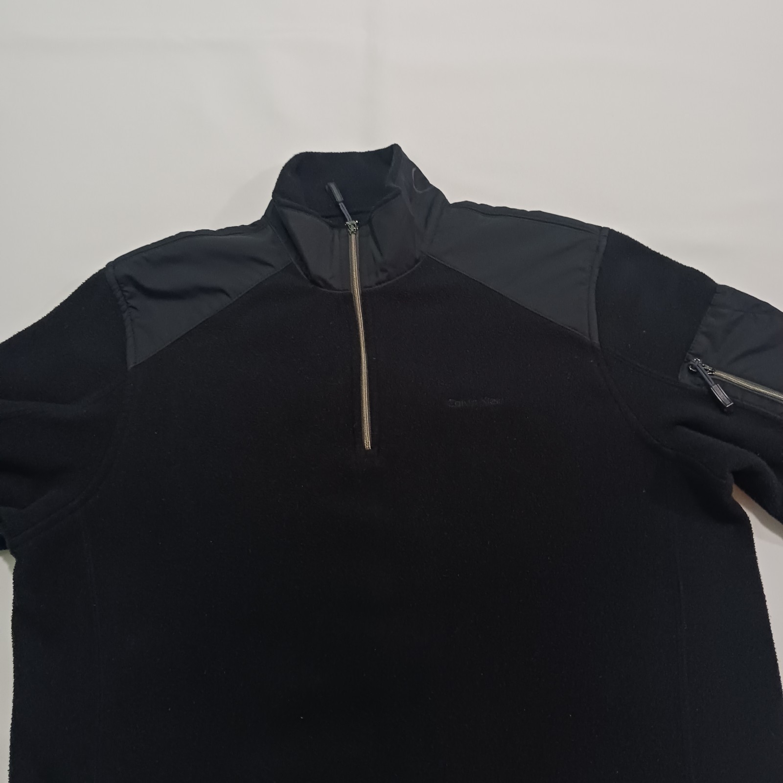 The Calvin Klein Tech Fleece Men’s 1/4 Zip Designer Athleisure Black Sweatshirt in size S is a stylish and comfortable sweater perfect for casual occasions. Made from high-quality fleece fabric, this pullover sweatshirt features a solid black color and long sleeves, making it a versatile and trendy addition to any man's wardrobe. With the iconic Calvin Klein branding, this designer piece adds a touch of luxury and sophistication to the classic athleisure style.