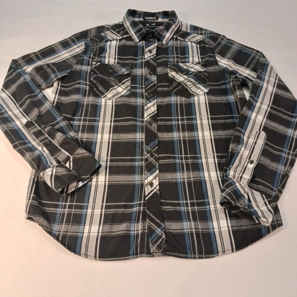 Carbon Classic Fit Multicolor Plaid Flannel Button Up Long Sleeve Shirt Men Sz M