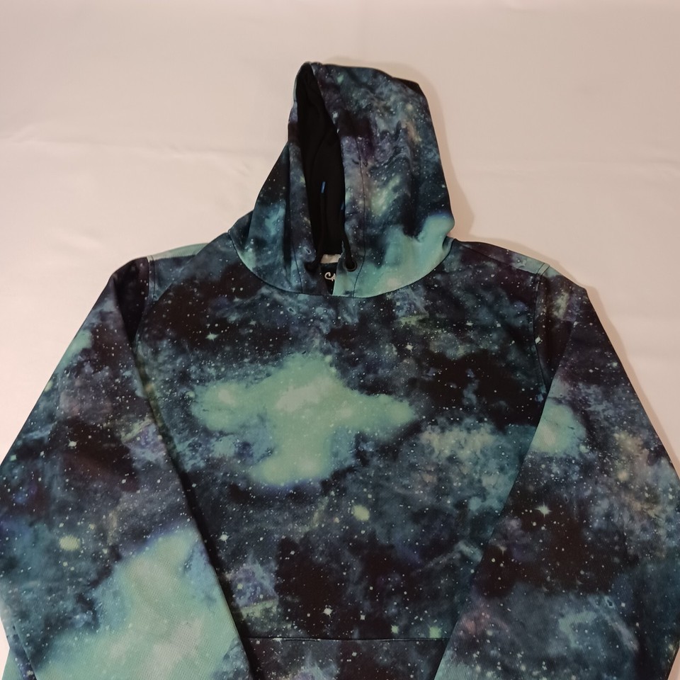 • Carbon Men's Black & Dyed Blue Drawstring Hoodie Pullover Sweatshirt Size Medium image 10