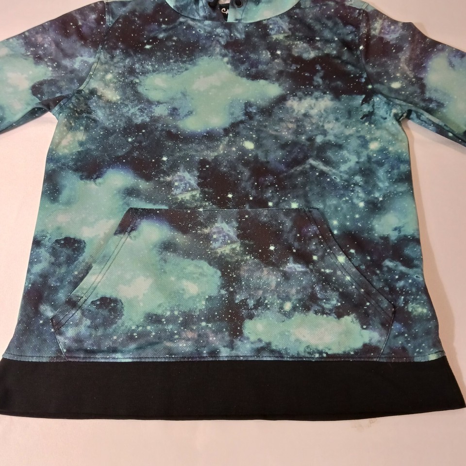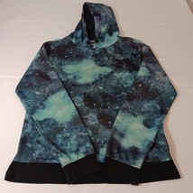 Carbon Men's Black & Dyed Blue Drawstring Hoodie Pullover Sweatshirt Size Medium