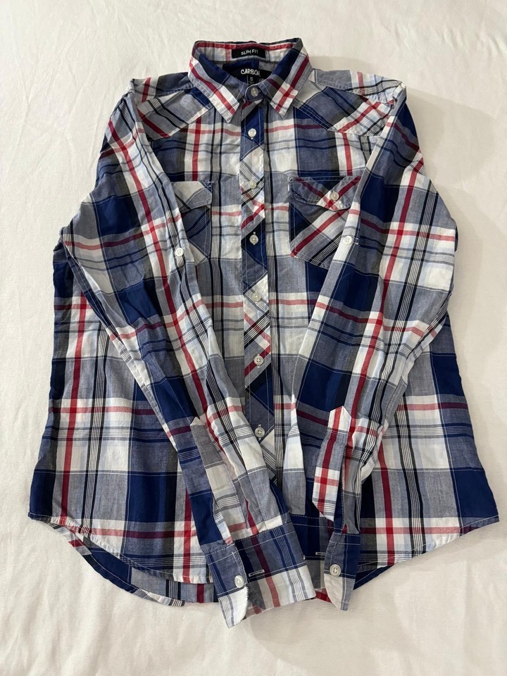 • Carbon Slim Fit Men's Multicolor Button Up Plaid Pockets Shirt Long Sleeve S image 1