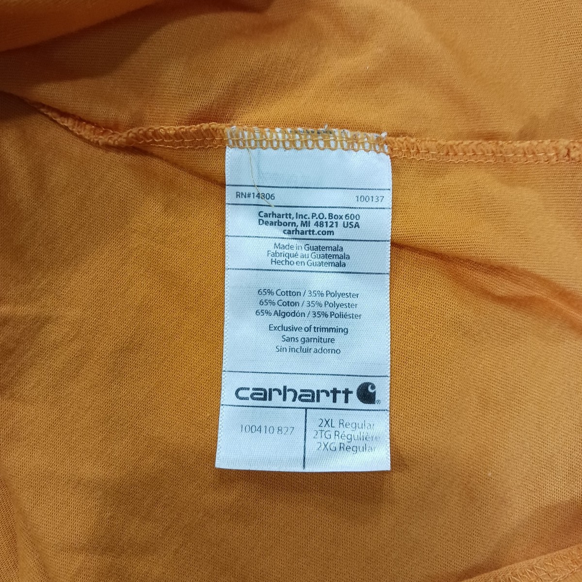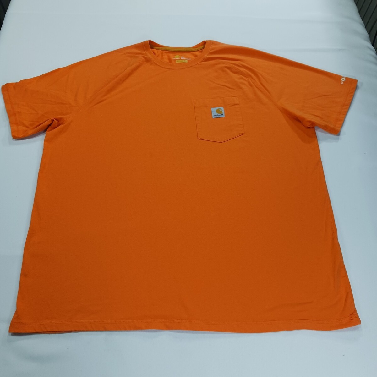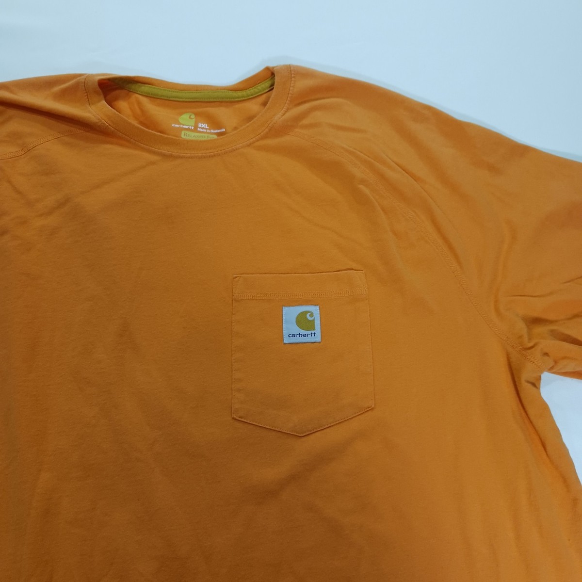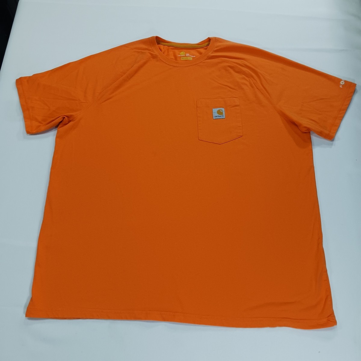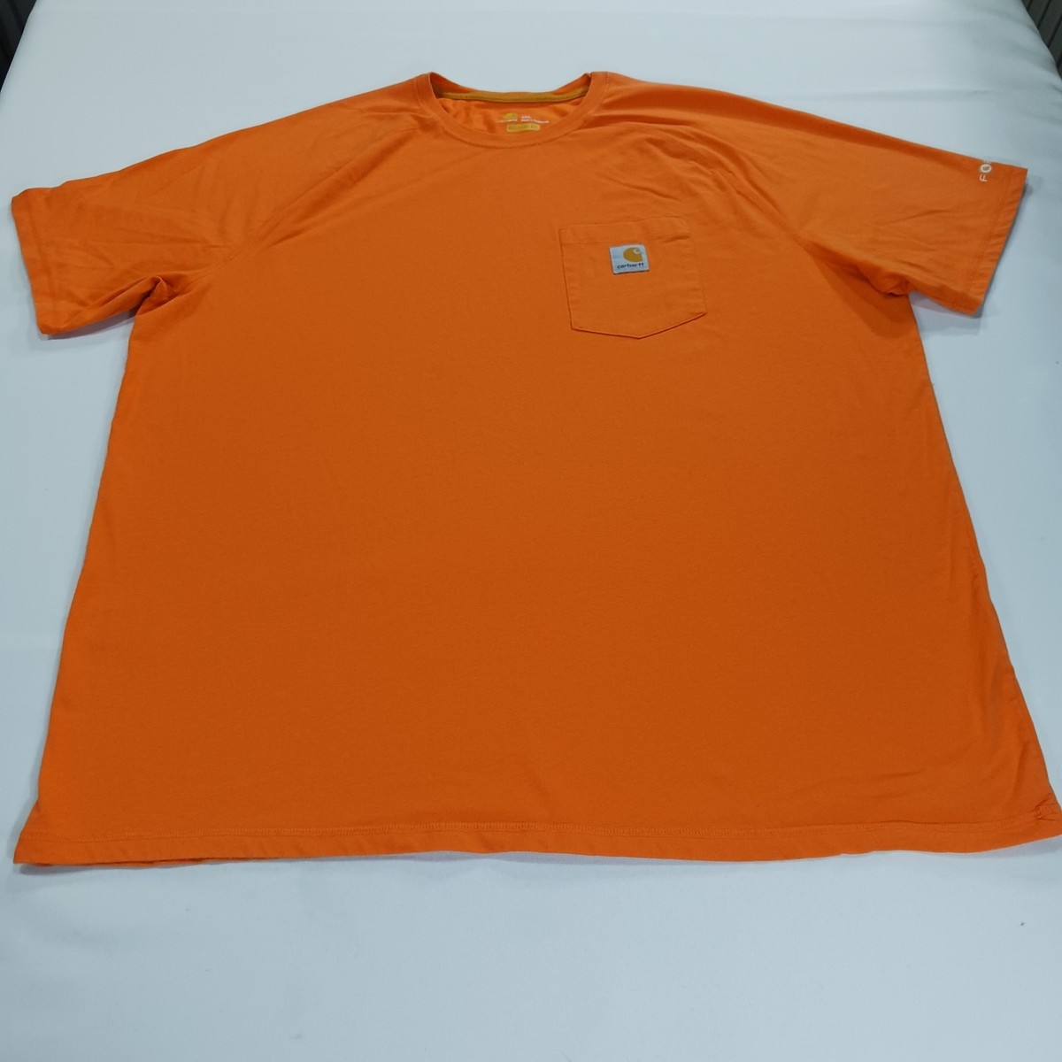 The Carhartt Force Men's 2XL Orange T-Shirt is a relaxed fit adult pocket tee made from a blend of polyester and cotton. This solid orange shirt features a crew neck and short sleeves, ideal for outdoor work or everyday wear. The lightweight and breathable fabric make it easy to care for and suitable for all seasons. With the Carhartt logo accent and classic outdoor theme, this shirt is a versatile and comfortable addition to any man's wardrobe.