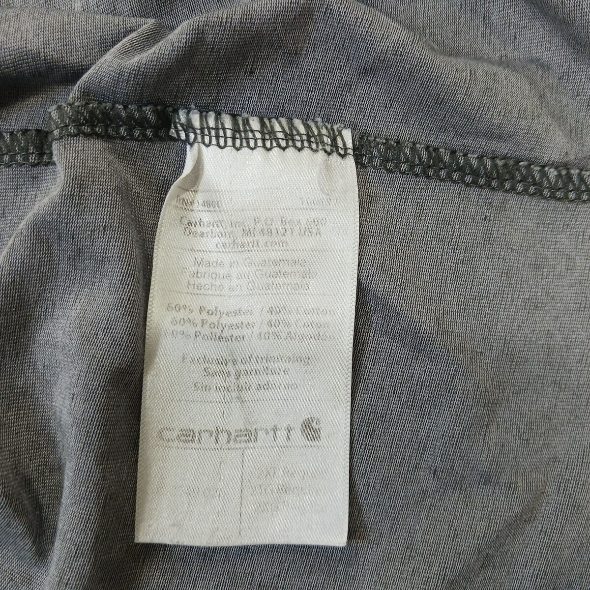 The Carhartt Force Relaxed Fit Men's Gray Cotton Blend Short Sleeve T-Shirt in size 2XL is a versatile and comfortable option for men looking for a high-quality shirt. Made from a blend of polyester and cotton, this shirt features a solid gray color with a crew neck and relaxed fit, making it suitable for all seasons. The shirt also includes accents such as a pocket and logo, adding a touch of style to a classic wardrobe staple. Perfect for those who prefer a regular fit and enjoy the durability and quality associated with Carhartt clothing.