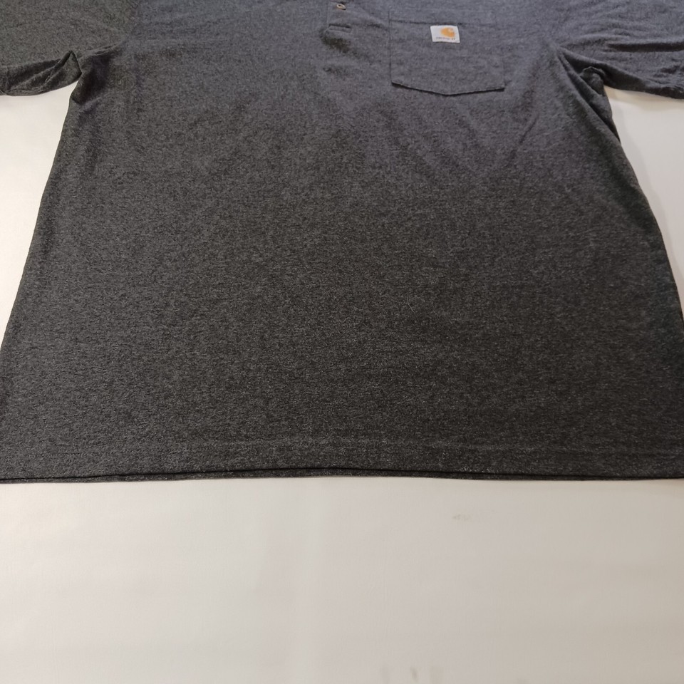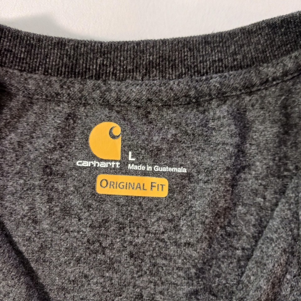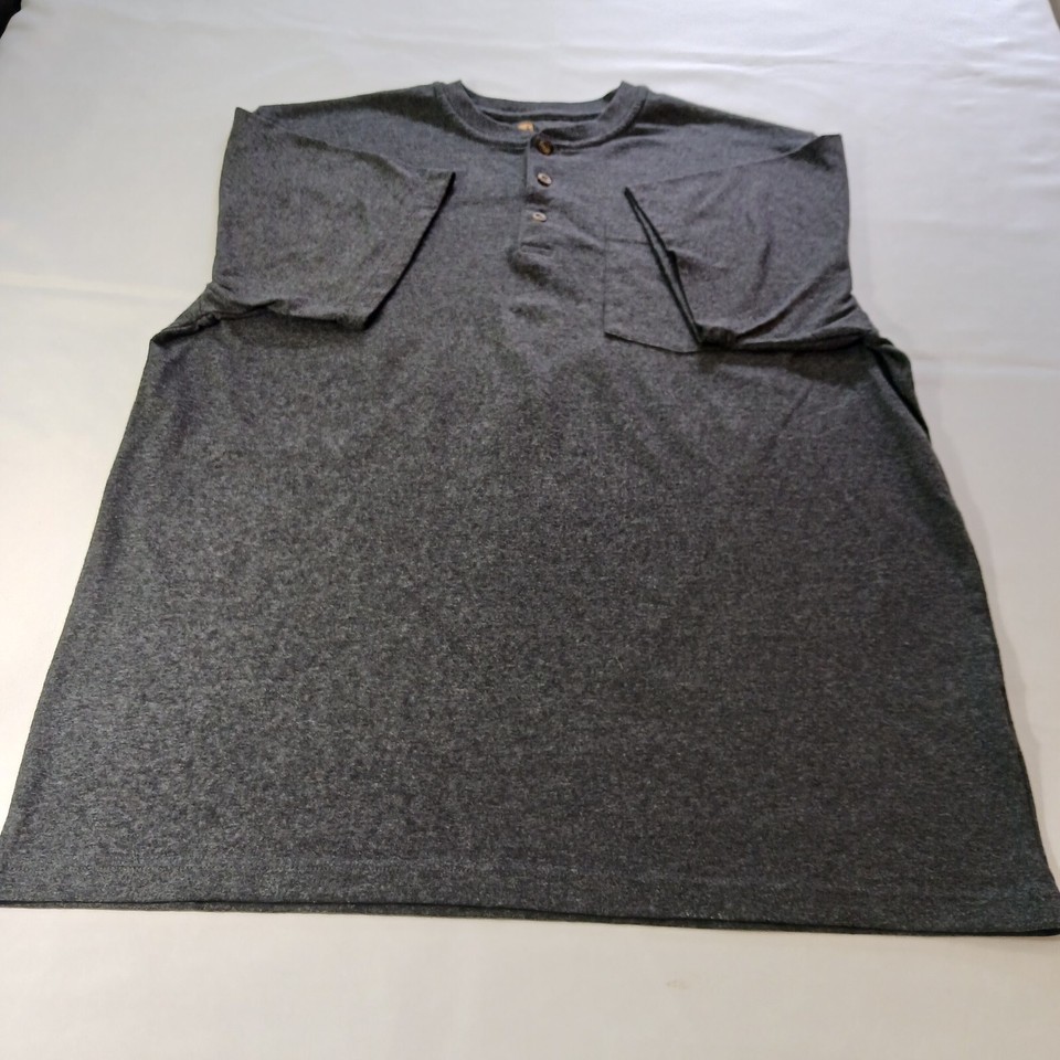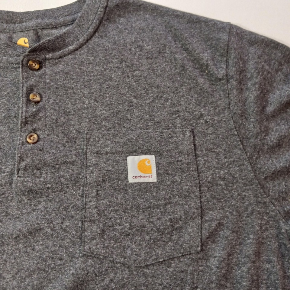 This Carhartt Henley Men's T-Shirt in size Large is perfect for any outdoor activity. The shirt is made of a comfortable knit fabric type with a solid pattern in charcoal color. It features a henley neckline and short sleeves, making it suitable for all seasons. The shirt also has pockets to keep your essentials close by.