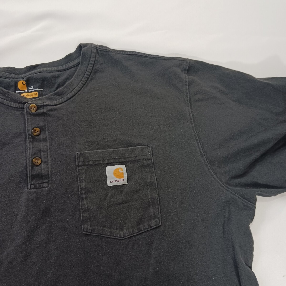 Carhartt K84 BLK Men's Black Henley Cotton Pocket Shirt Short Sleeve Size 2XL