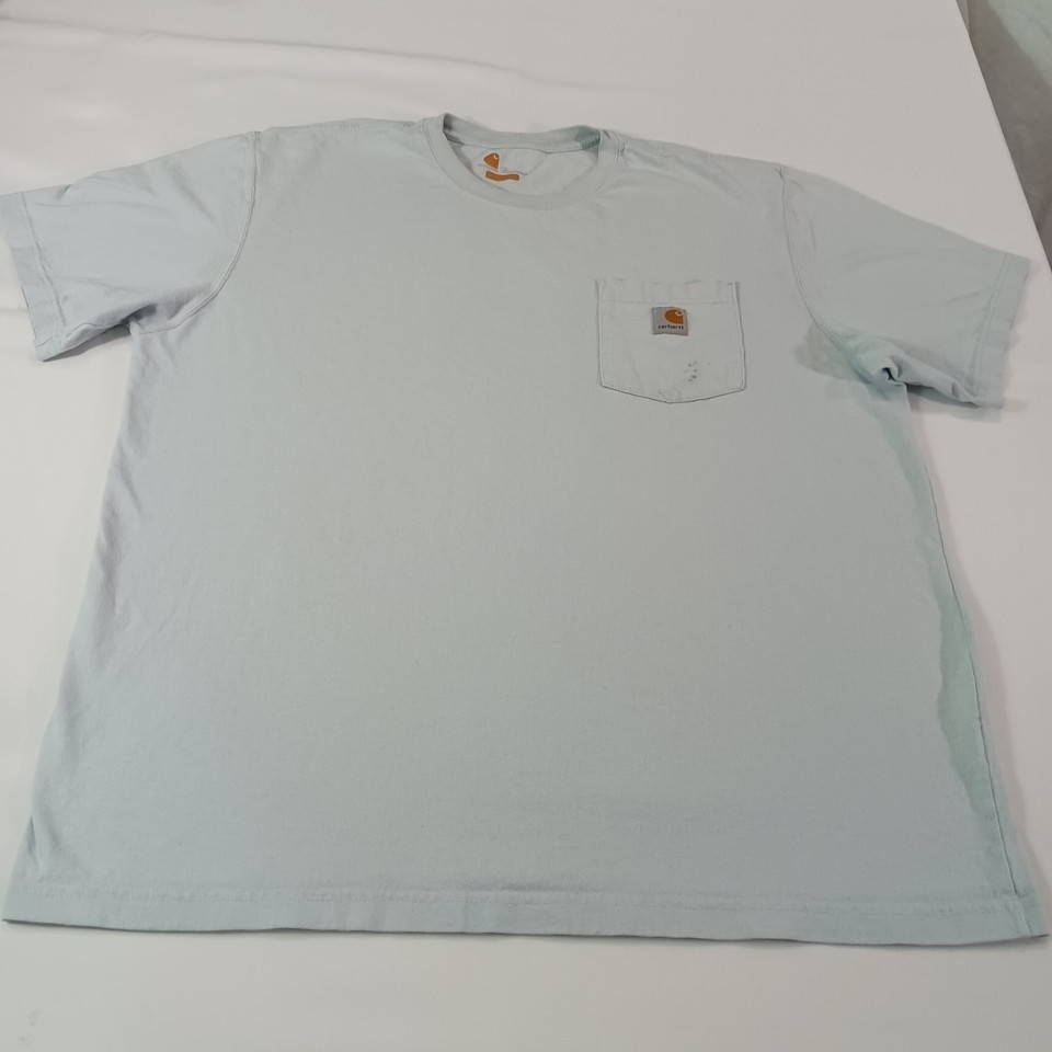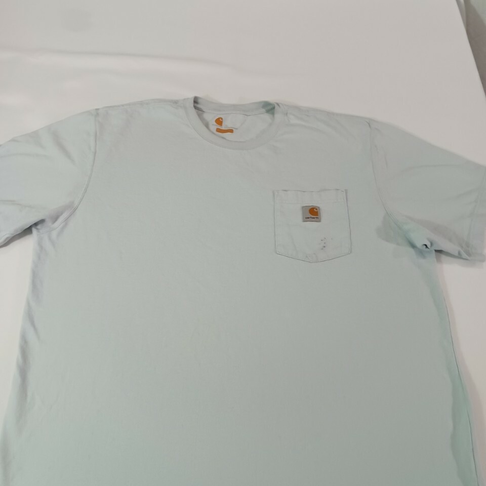Elevate your casual wardrobe with this Carhartt K87-120 Men's T-Shirt. This light blue crew neck features a solid pattern and short sleeves, perfect for a classic and art-inspired look. Made of heavyweight cotton material, this shirt is durable and comfortable to wear.