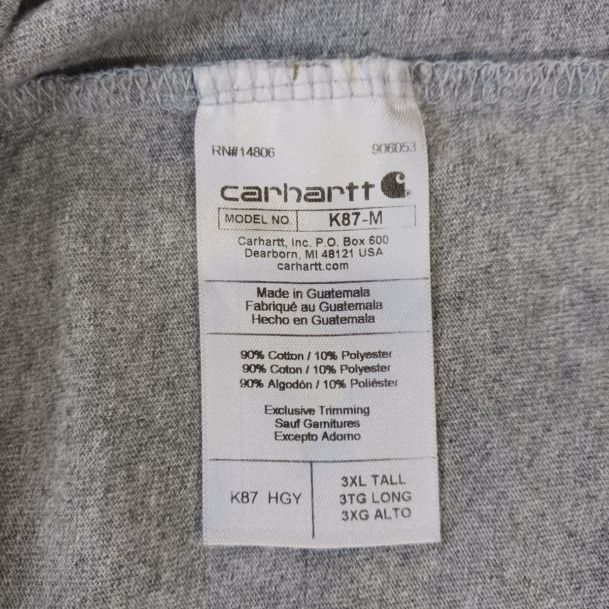 • Carhartt K87 HGY Men's Gray Cotton Blend Short Sleeve T-Shirt Size 3XL Tall image 10