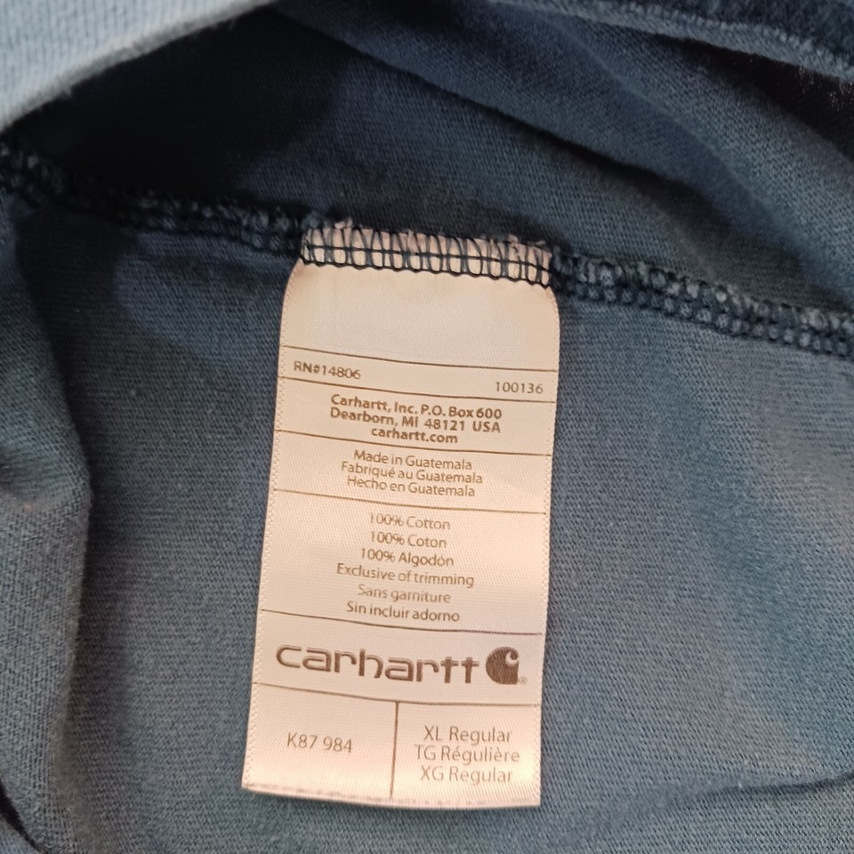 Carhartt K87 Original Fit Men's T-Shirt Size XL Bluestone Crew Neck with Pocket