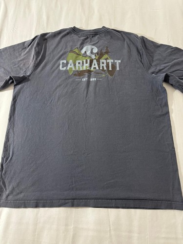 This Carhartt TK4615-M T-Shirt is a men's gray cotton short sleeve shirt in size 2XL. It features a crew neck, relaxed fit, and a Carhartt logo accent. Made from a knit fabric blend of polyester and cotton, this T-shirt is machine washable and suitable for all seasons. The design is characterized by its American outdoor classic theme, making it a versatile and comfortable option for casual wear.