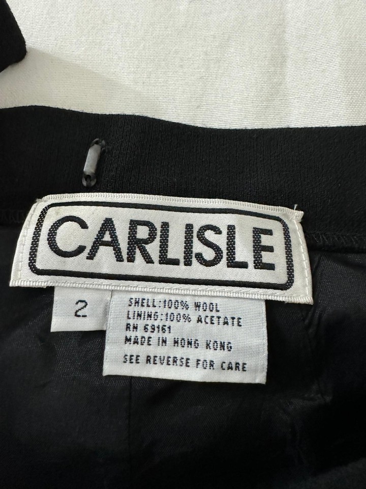 Carlisle RN#69161 Women's 100% Wool Rear Zip Pencil Black Skirt Size 2 Waist 24"