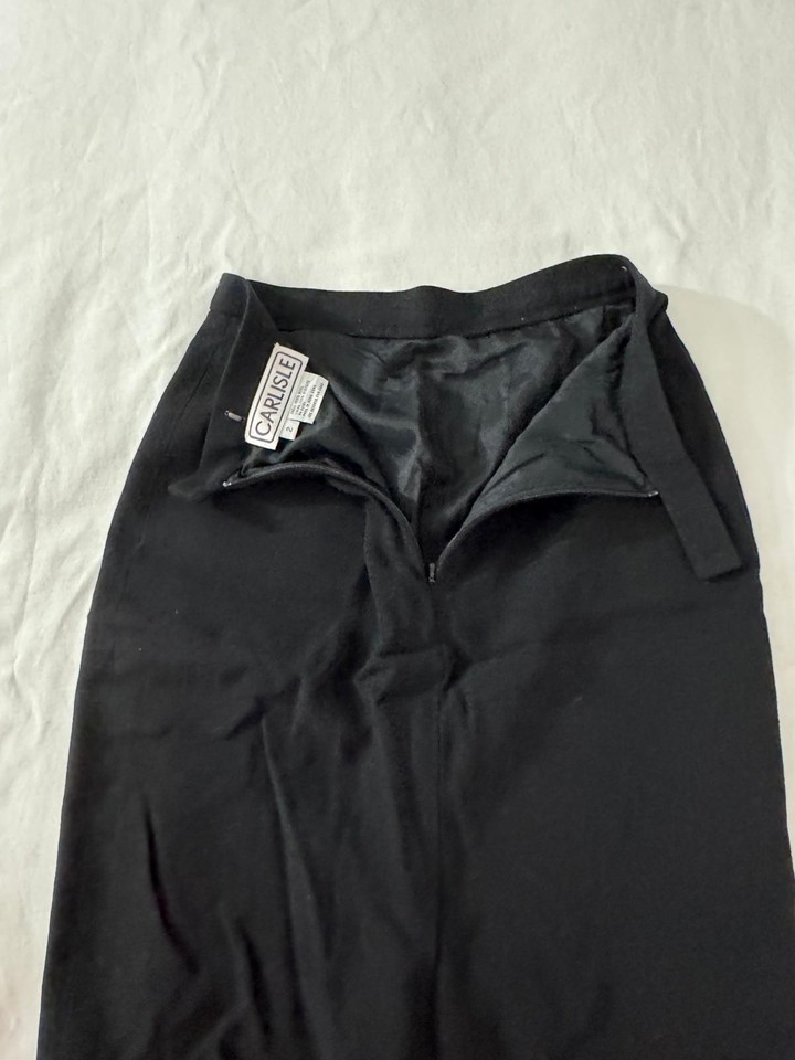 • Carlisle RN#69161 Women's 100% Wool Rear Zip Pencil Black Skirt Size 2 Waist 24" image 1