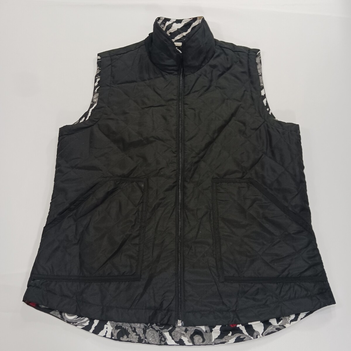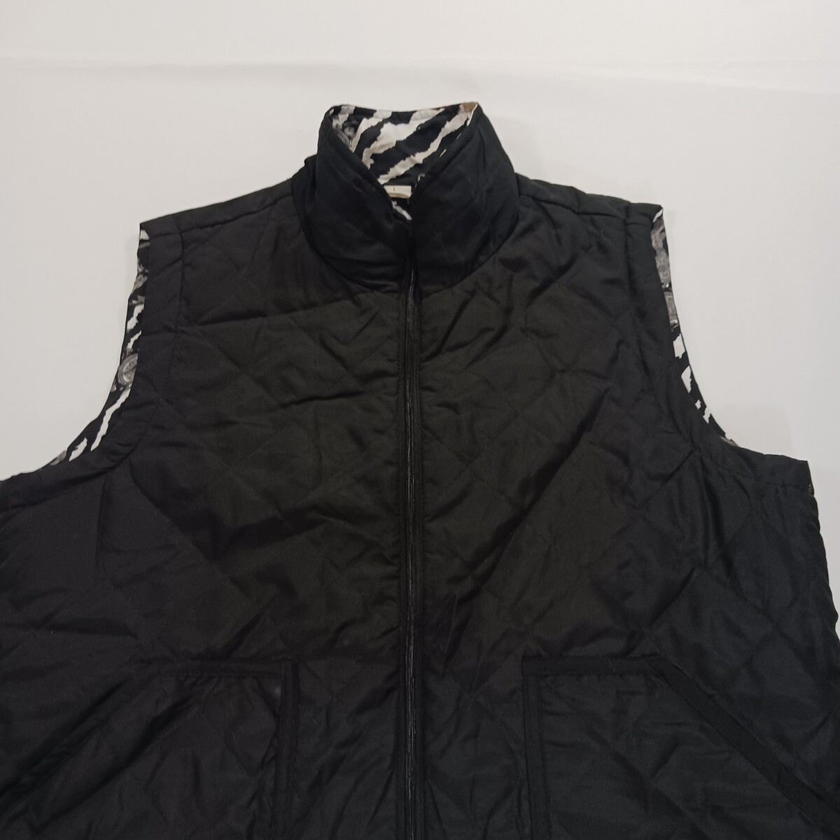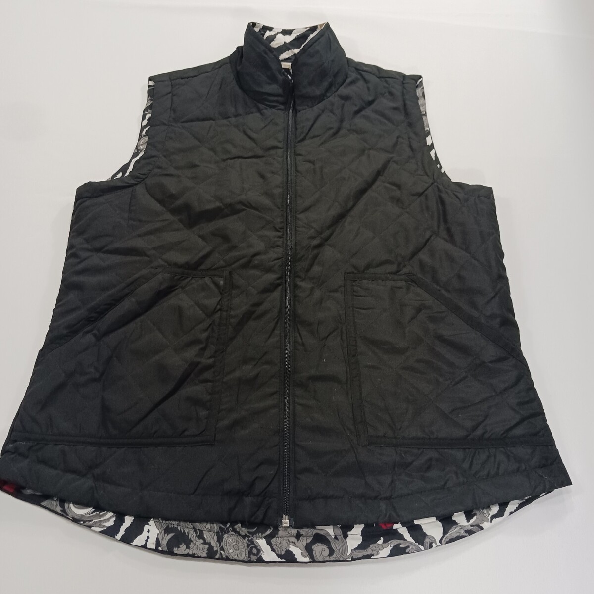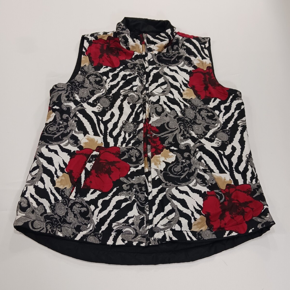 The Casual Identity RN#45749 Women's Floral Multicolor & Black Reversible Vest is a stylish and versatile outerwear piece perfect for casual occasions. Made from polyester with a fleece lining, this sleeveless vest features a zip closure and a floral pattern in vibrant multicolors. The unique reversible design allows for multiple styling options, making it a great addition to any woman's wardrobe. With a length of 27 inches and a size large, this vest is both comfortable and fashionable for everyday wear.