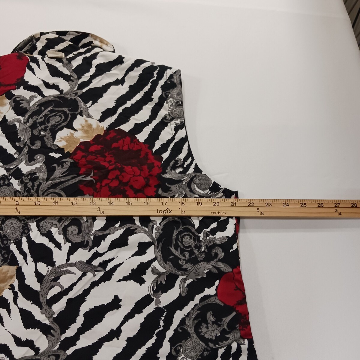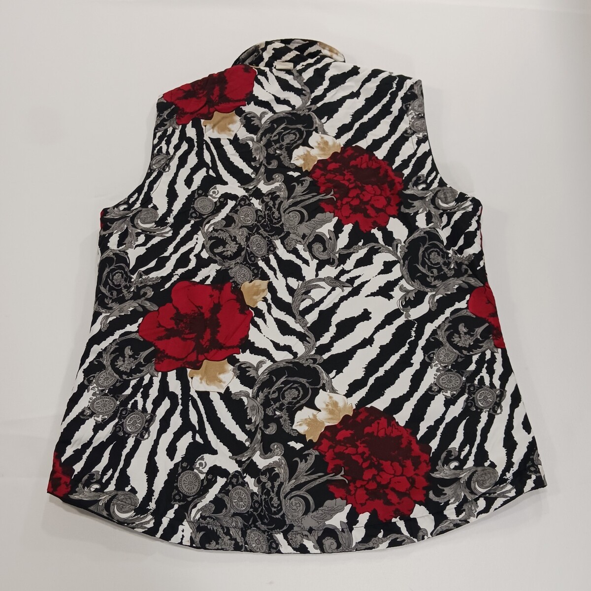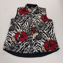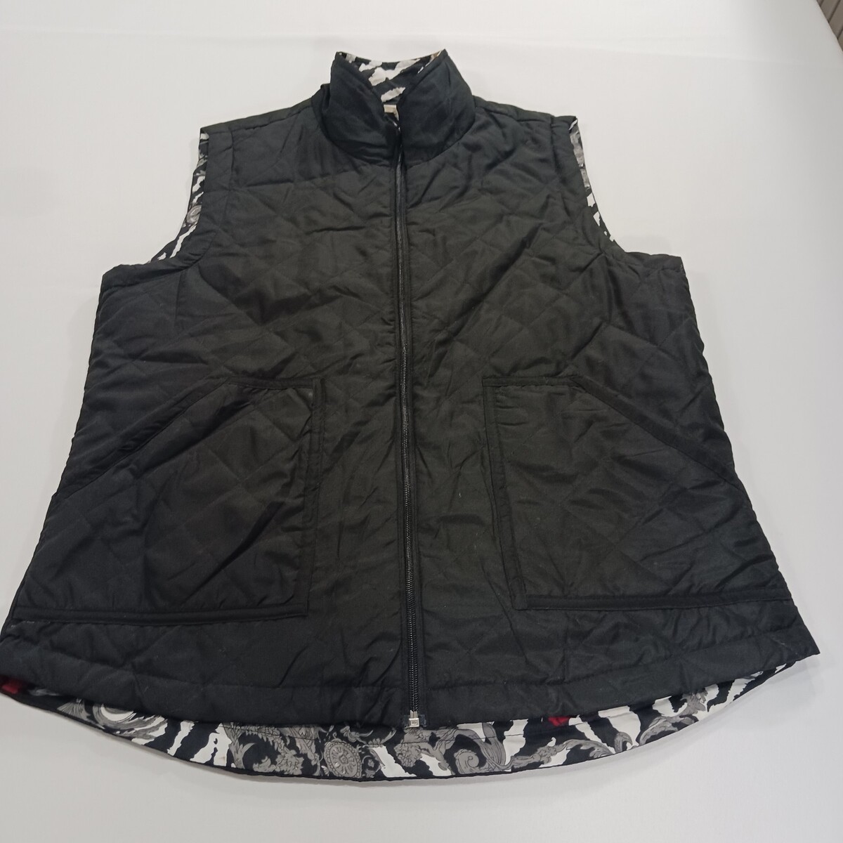 The Casual Identity RN#45749 Women's Floral Multicolor & Black Reversible Vest is a stylish and versatile outerwear piece perfect for casual occasions. Made from polyester with a fleece lining, this sleeveless vest features a zip closure and a floral pattern in vibrant multicolors. The unique reversible design allows for multiple styling options, making it a great addition to any woman's wardrobe. With a length of 27 inches and a size large, this vest is both comfortable and fashionable for everyday wear.