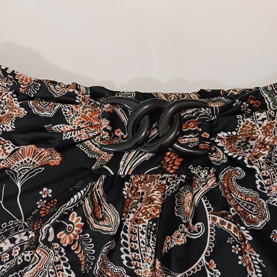 This Cato skirt is a stylish and comfortable piece for women in size 18/20W. It features a vibrant multicolor paisley and floral pattern, adding a fun and trendy touch to your wardrobe. The pull-on style and elastic waist make it easy to wear, while the midi length and A-line silhouette offer a flattering fit. Made from a blend of polyester and spandex, this skirt is both soft and stretchy for all-day comfort. Perfect for adding a pop of color and pattern to your outfit, this versatile skirt is a great choice for any casual or semi-formal occasion.